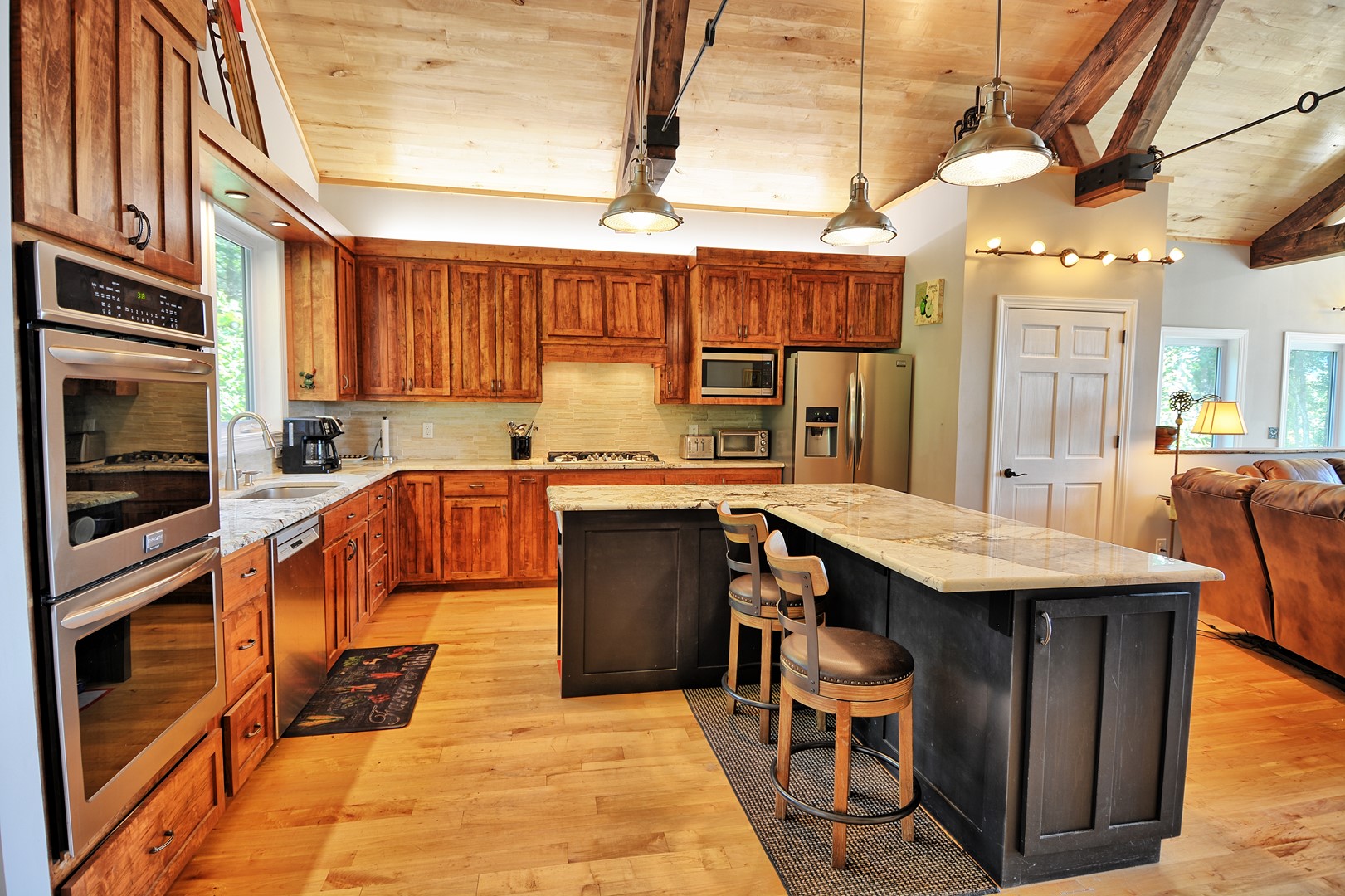 The amazing and modern kitchen has granite counter tops, SS appliances, double wall oven, 5 burner gas cook top, microwave, a regular and K-cup coffee maker, toaster oven, toaster, slow cooker and most everything else needed to prepare your favorite meal.