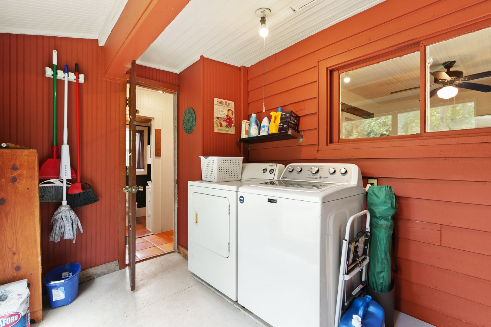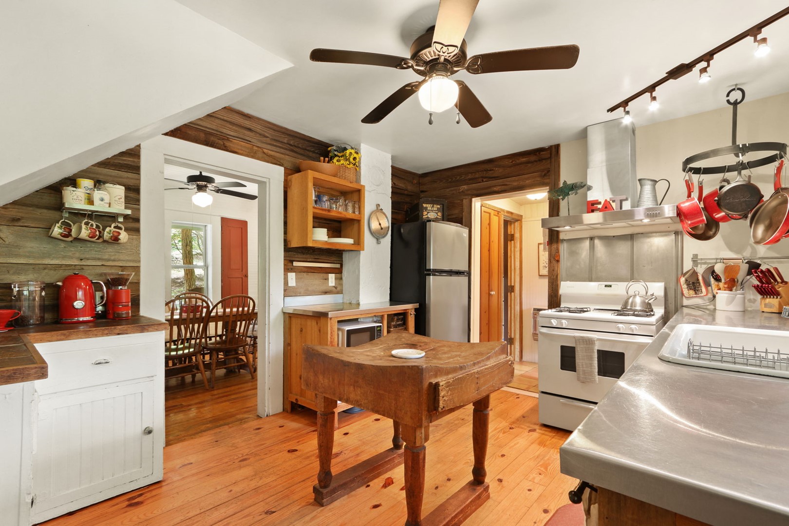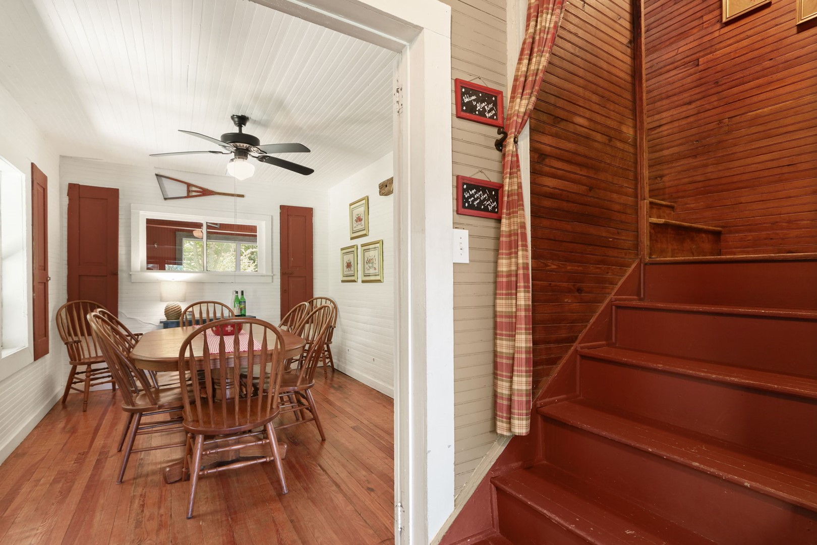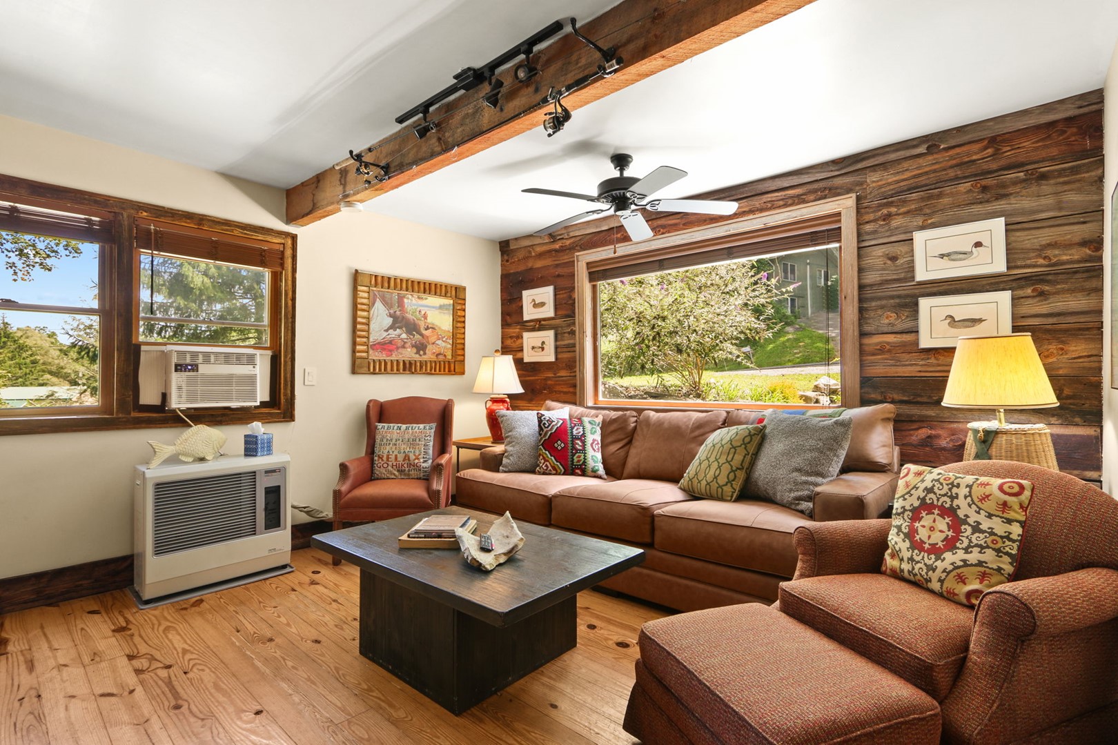 Main Floor: There are 2 bedrooms with king beds and 1 bathroom on the main floor. Both bedrooms on the main floor offers King size beds. There is a full bathroom off of the laundry room with a tub/shower bathroom. The fully stocked kitchen offers a gas stove, microwave, and regular coffee maker. Our home does not have a dishwasher, but the sink overlooks the river. The dining room seats 6-8 guests comfortably to enjoy your favorite meal. The living room has a nice sectional sofa, a chair with ottoman, Roku with Netflix, Hulu (you must provide your personal login info) and regular cable channels with Spectrum Cable and a nice wood stove to enjoy those cold winter days. The full size washer and dryer is also on the main level.