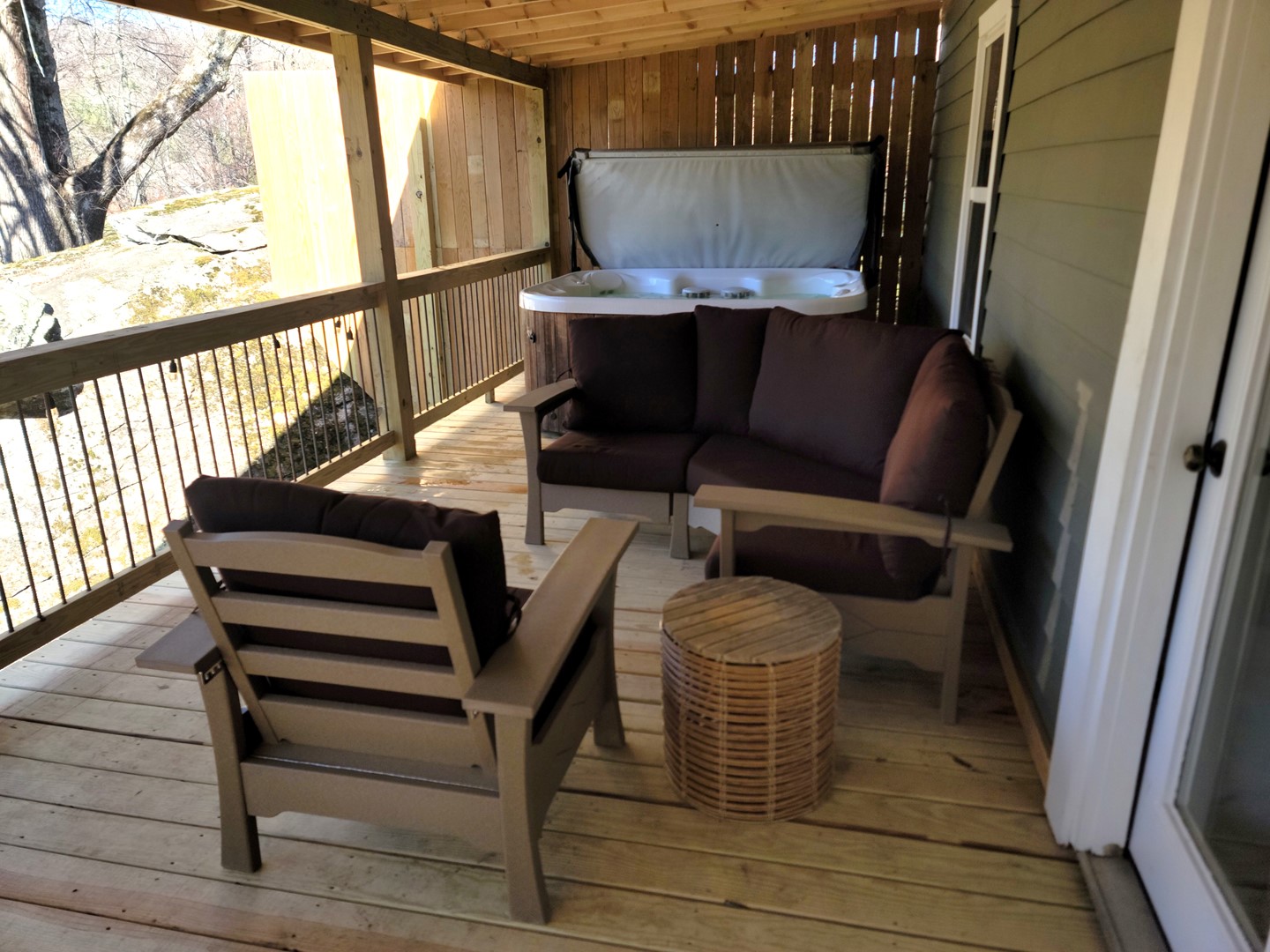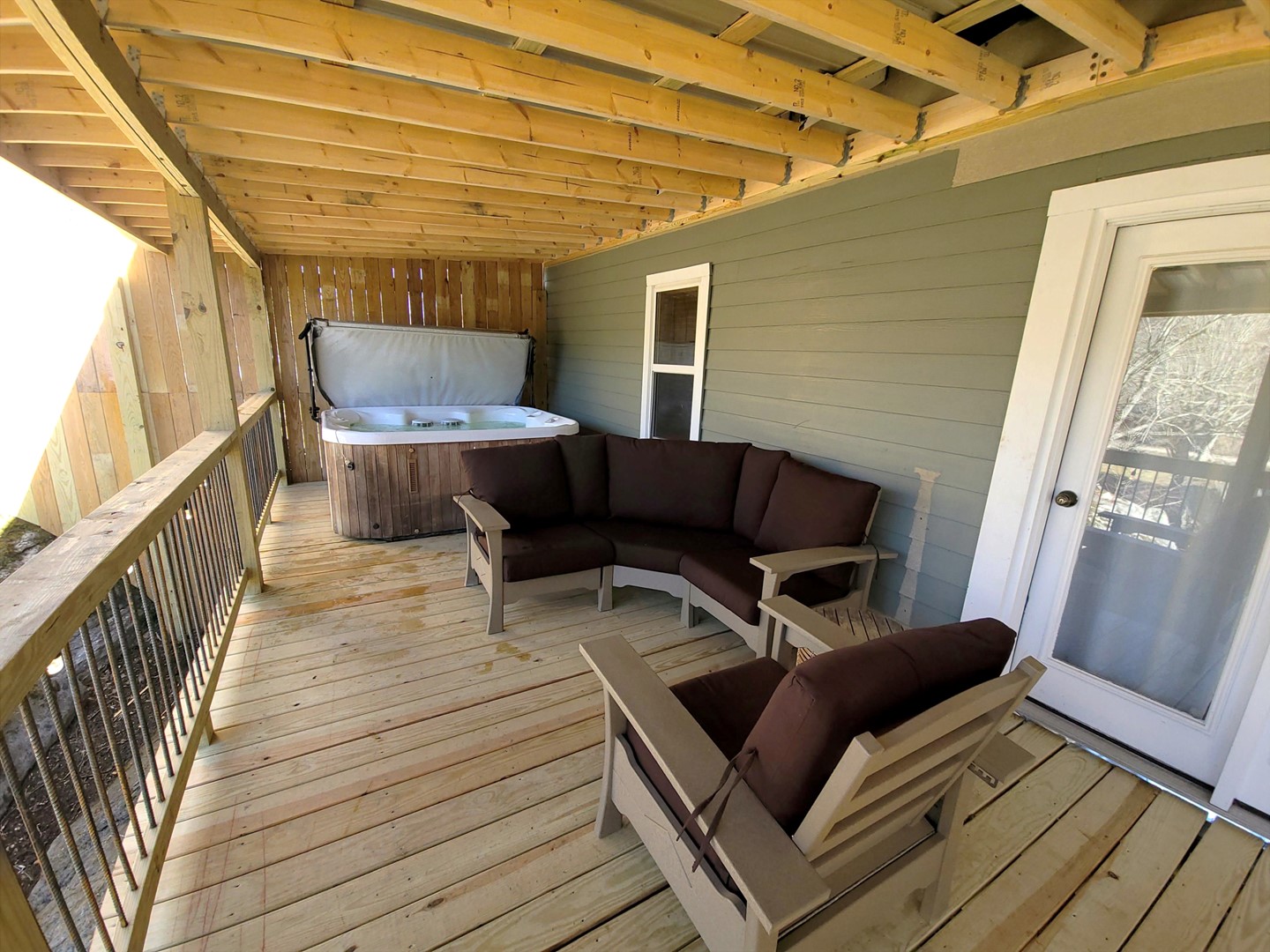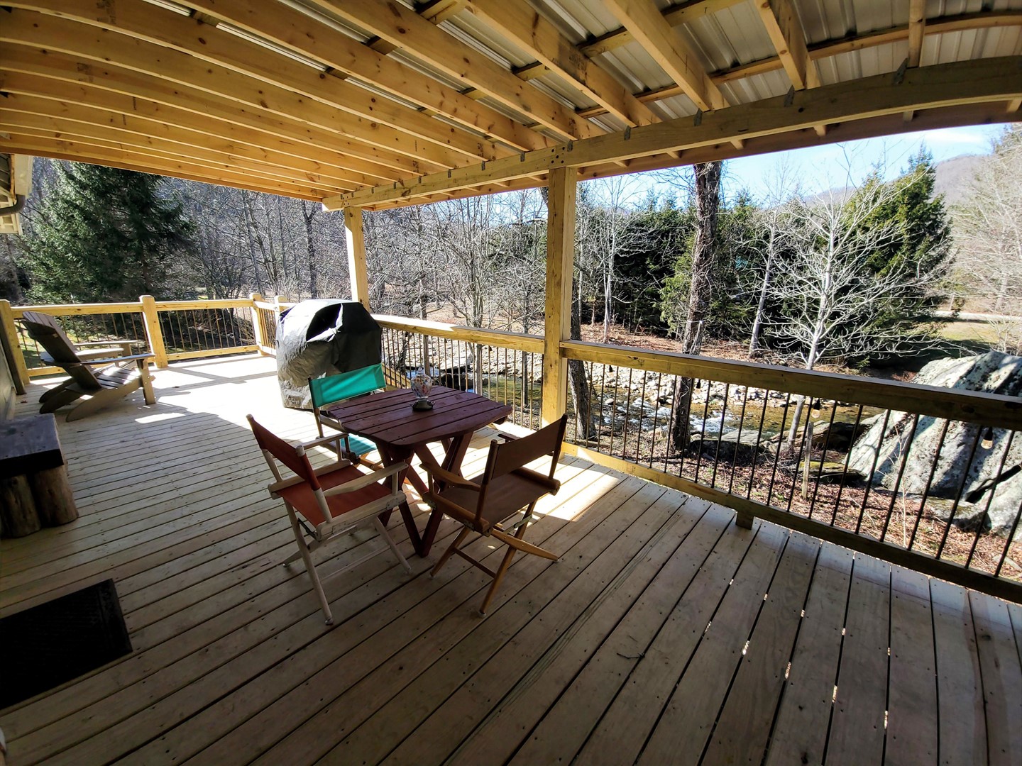 Outside: The back deck is the place to be!! The covered deck has a nice 4 person hot tub overlooking the river, gas grill and seating to relax and listen to the noisy Watauga River. Bring your fly fishing gear and test your skill in the river or you can get what you need at the Foscoe Fishing CompanyThere are three species of trout found here: the Rainbow, the Brown and the elusive Brook Trout. You can also find smallmouth bass.