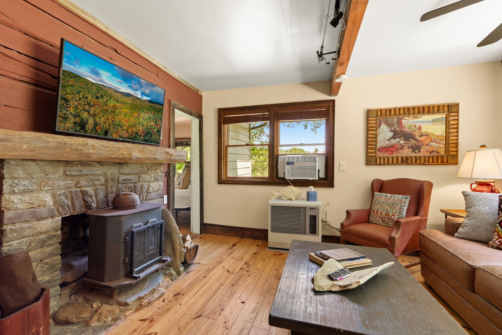 Alamo River House offers 3 bedrooms, 2 bathrooms, HOT TUB, Wi-Fi, Smart TV, wood burning stove (wood not provided), rustic style home, natural and beautiful rock outcroppings, and the Watauga River is practically in your back yard! Easy all paved access will make this home a place you would want to visit year after year.