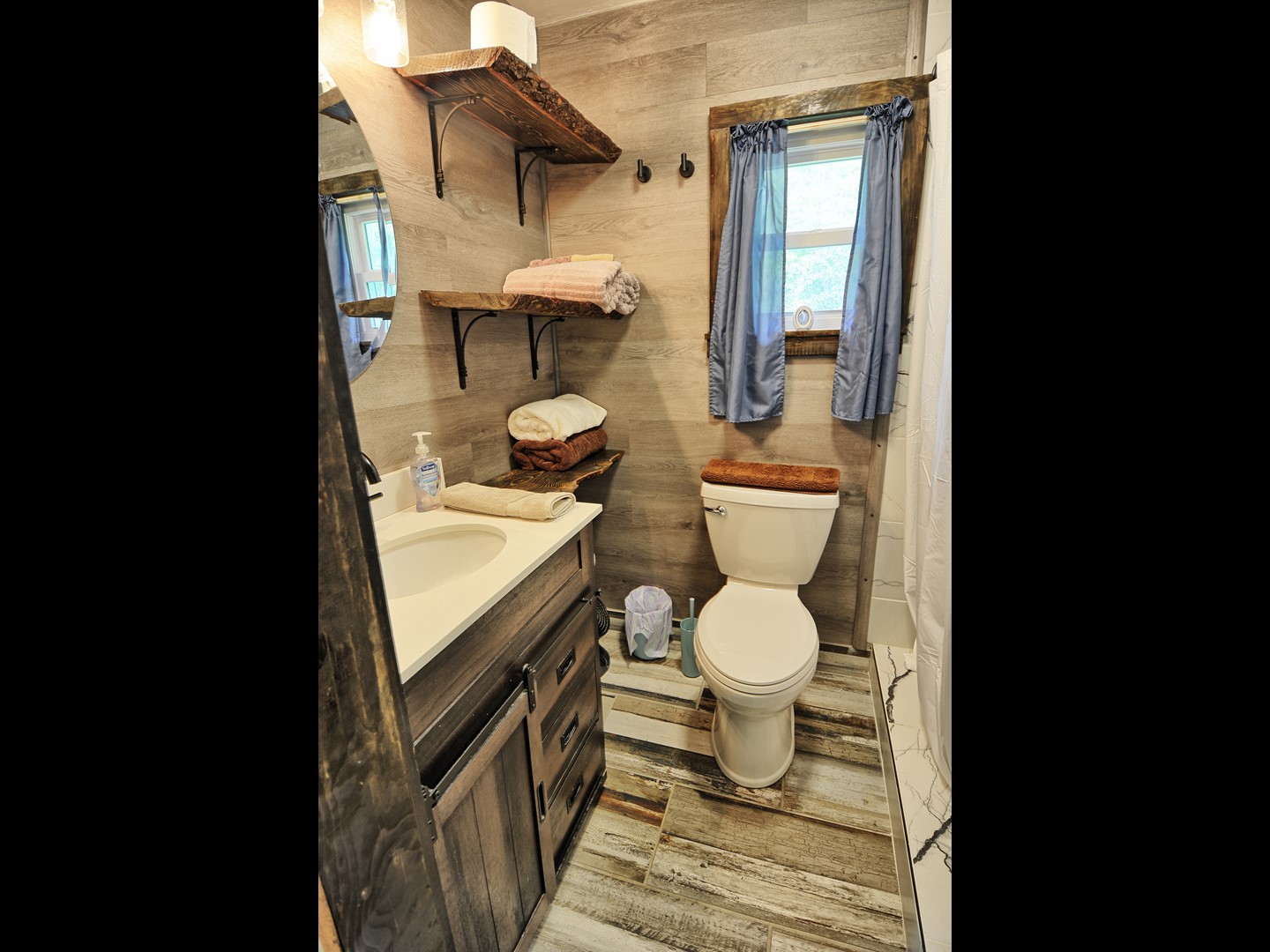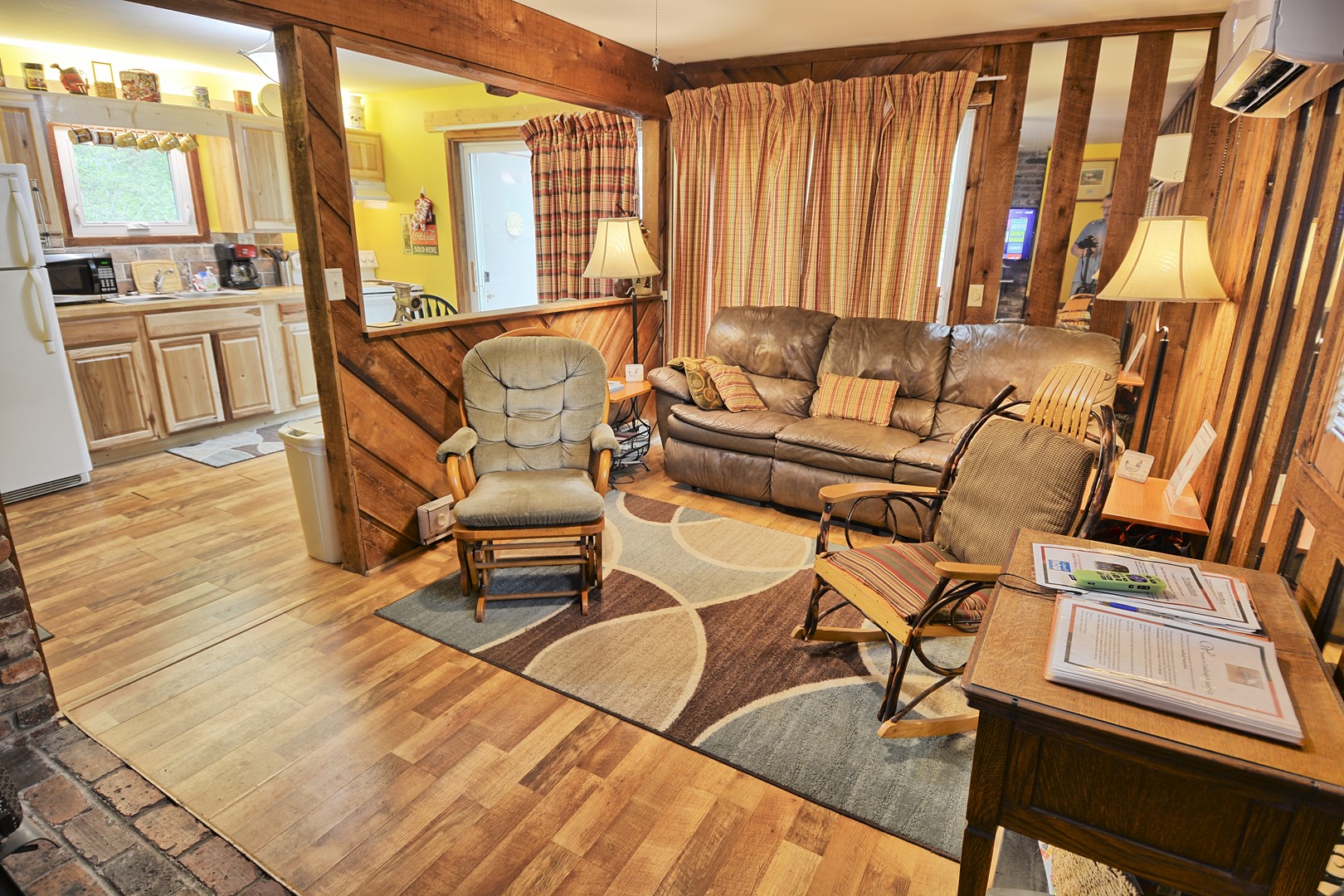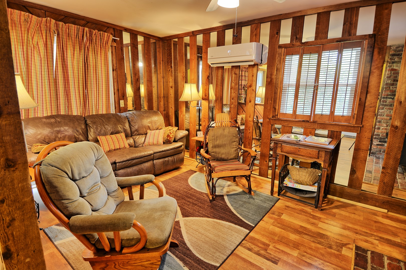 On the main level, the living room offers old-timey wood burning stove- great to snuggle up on those cool mountain evenings (wood not provided), 40" Smart HDTV and high speed internet. The kitchen is equipped for cooking for the 2 of you and there is plenty of seating around the dining table. The full bathroom is just off the hallway/kitchen area on the main floor. There is a minisplit in the living room with heat AND AC with a remote control.