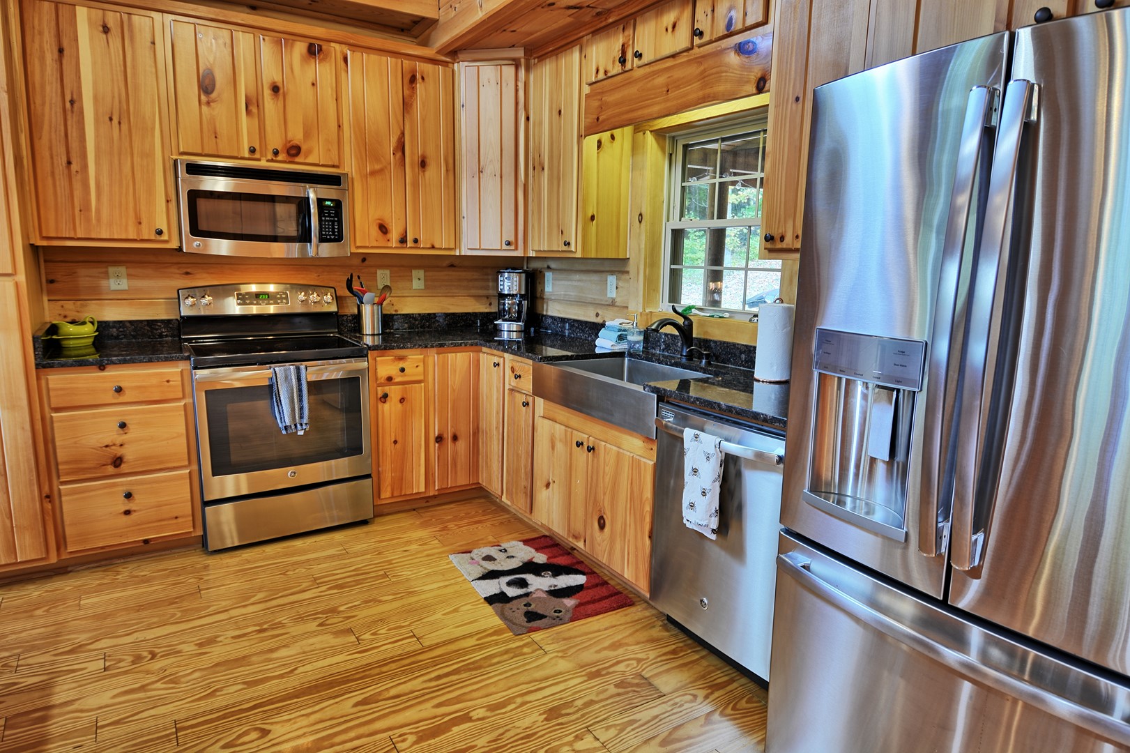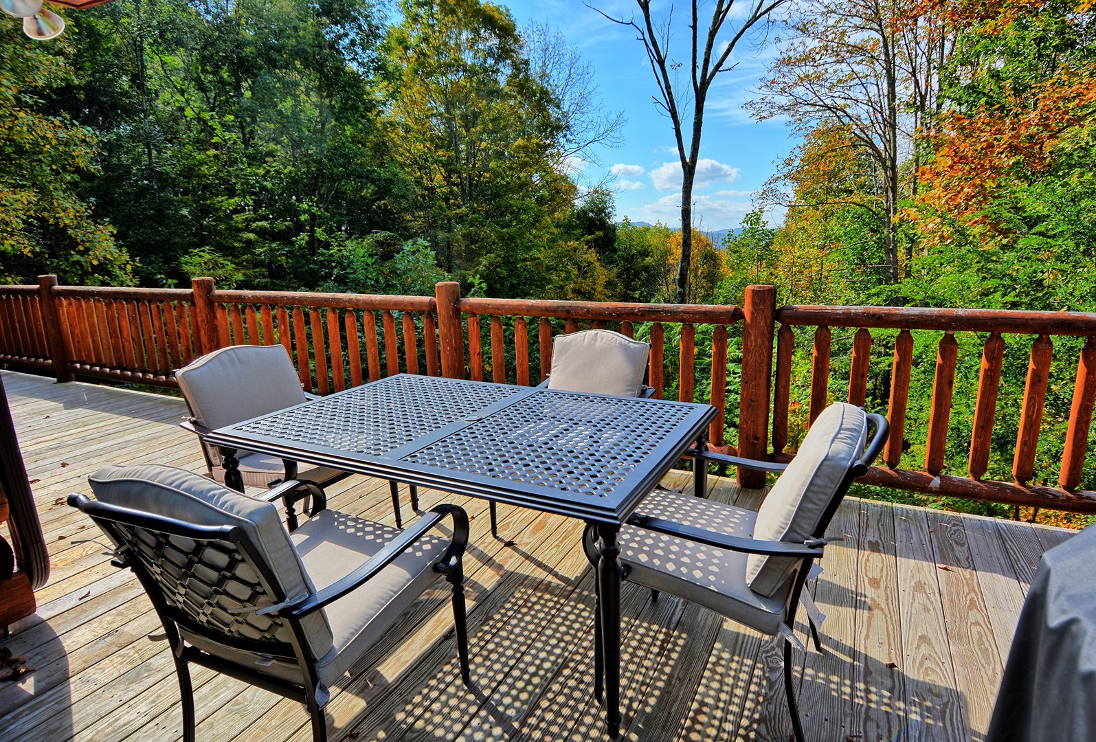 Outdoor Living: Private hot tub, back deck with dining table and gas grill, fire pit w/ Adirondack chair seating, on-site small creek & walking trails, mountain & forest views.