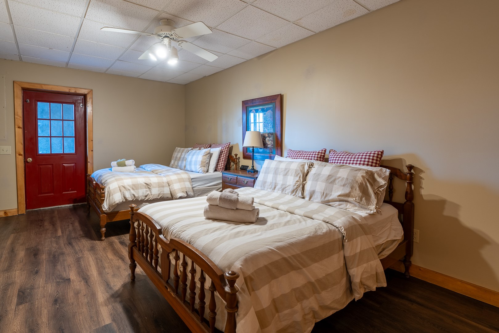 **Lower Level: There are 3 private bedrooms and 3 full bathrooms on the lower level. The 4th bedroom has a queen size bed with a TV. The 5th bedroom has a king size bed. The 6th bedroom has 2 double beds. There is a sitting area as well on the lower level and has flat screen TV.