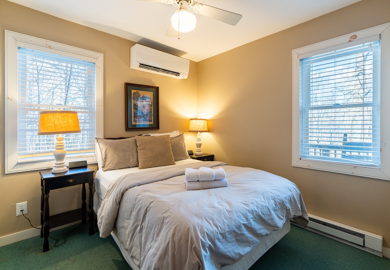 There are 2 bedrooms, 1 full bathroom and a half bathroom on the main floor. One bedroom has a queen size bed with En Suite private bathroom with tub/shower combo, and personalized heating/cooling system. The 2nd bedroom has a full size bed with personalized heating/cooling system.