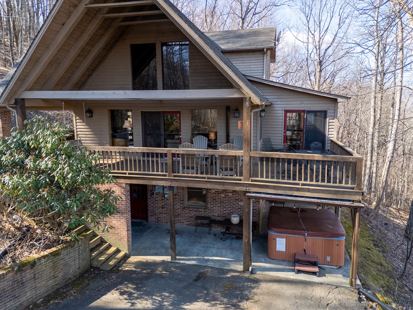 **Outside: There is a large hot tub sitting under a covered deck for you and your guests to indulge yourselves in after a long day of hiking, shopping, or just relax from everyday hustle and bustle. Cook your favorite steaks, burgers, or hot dogs on our outdoor gas grill.