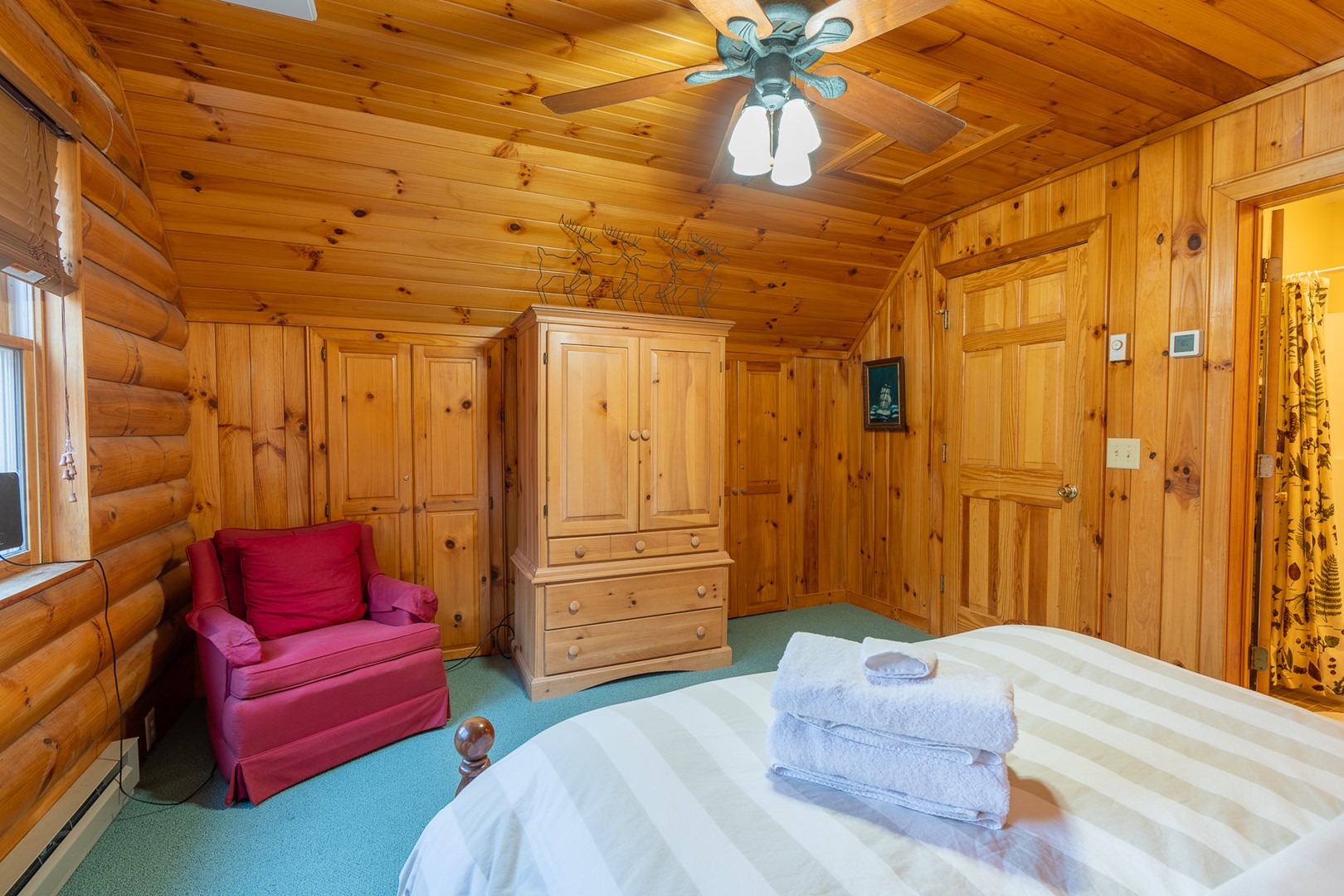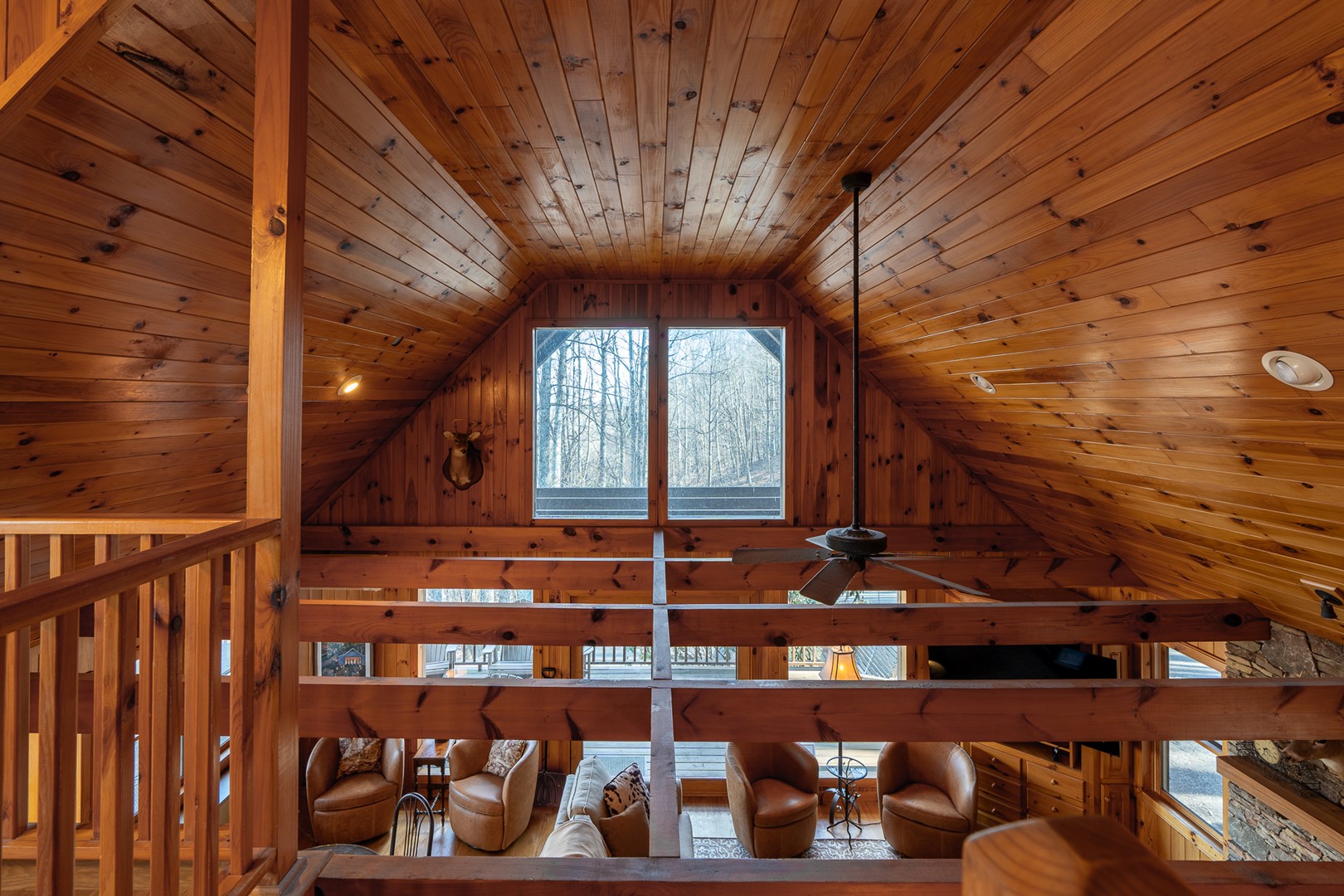 **Upper Floor: There is a private queen size bedroom with a private bathroom with a walk-in shower along with a Roku TV and a system with heating and air condition. The loft has a sitting area to read a book or take a nap.