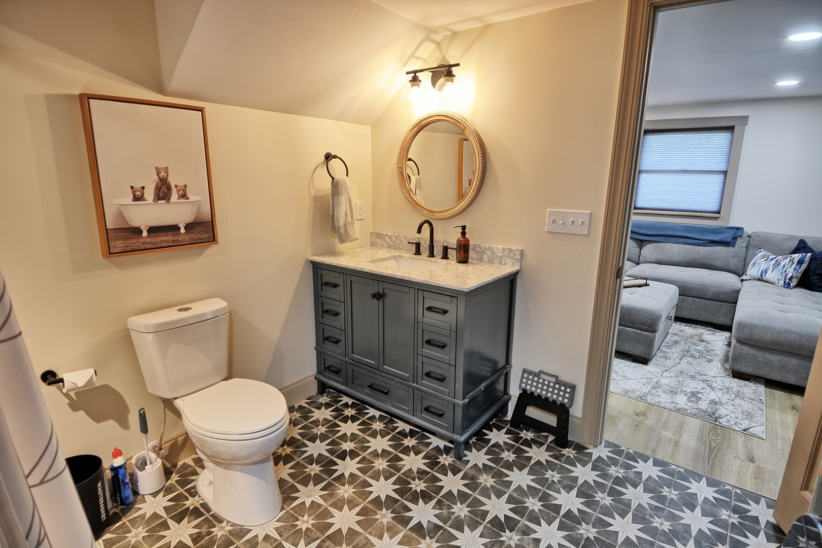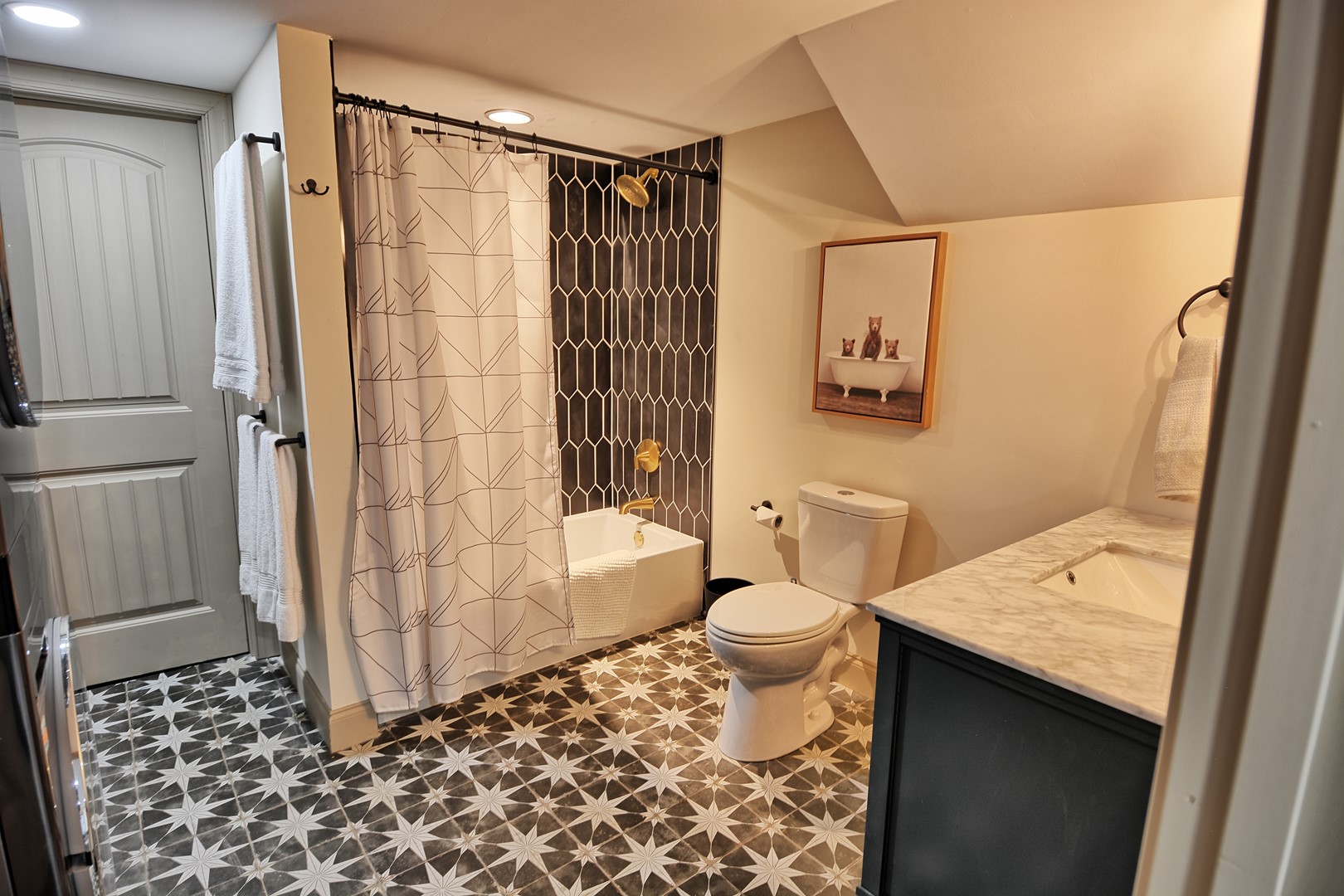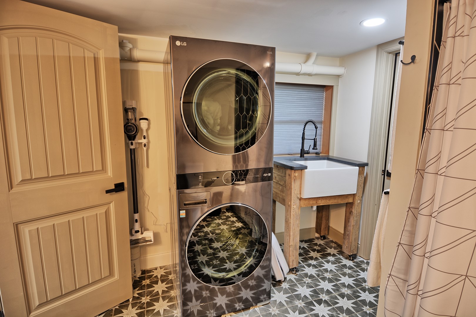 The 3rd bathroom is on the lower level and has a tub/shower combo and the full size washer and dryer for your convenience.