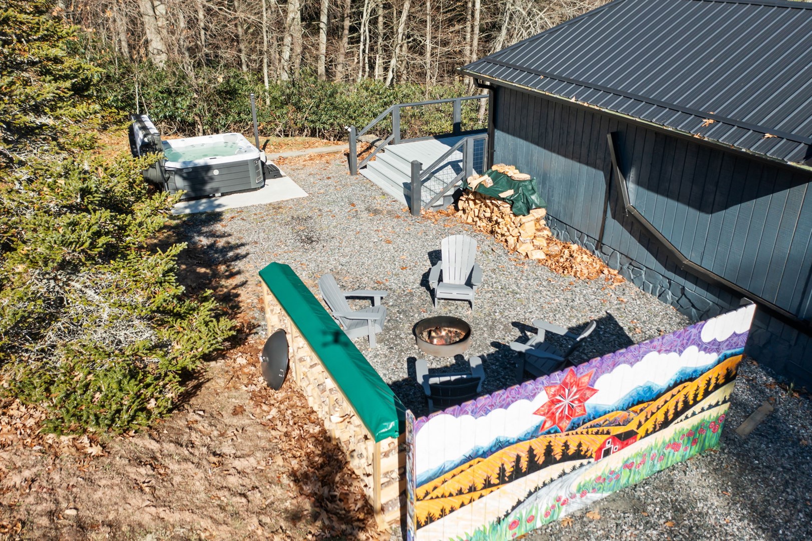 Relax in our private and soothing hot tub and gaze at the stars at night. There is also a wood burning fire pit with seating with privacy.