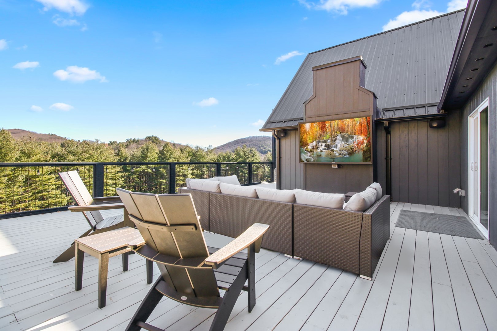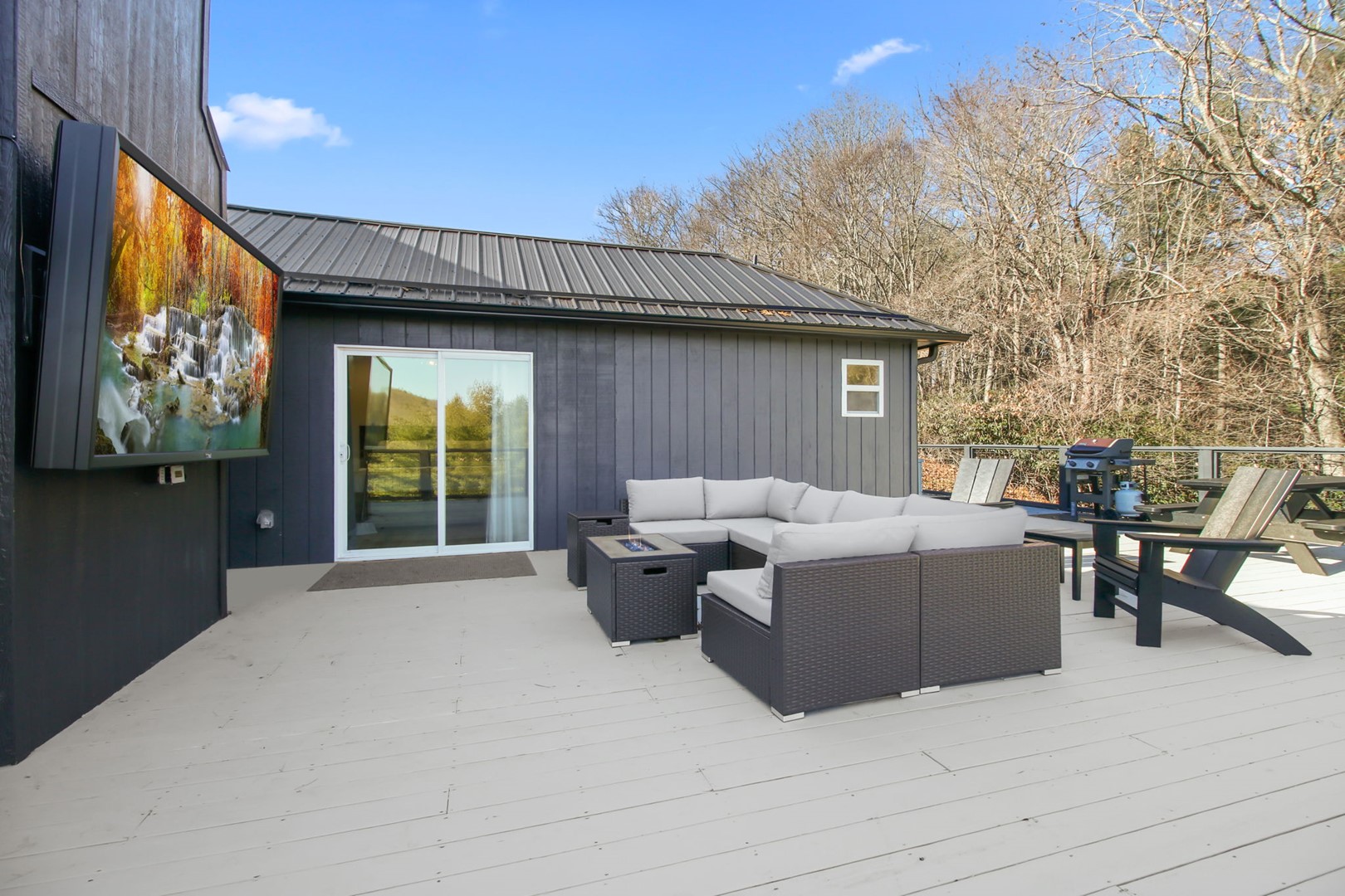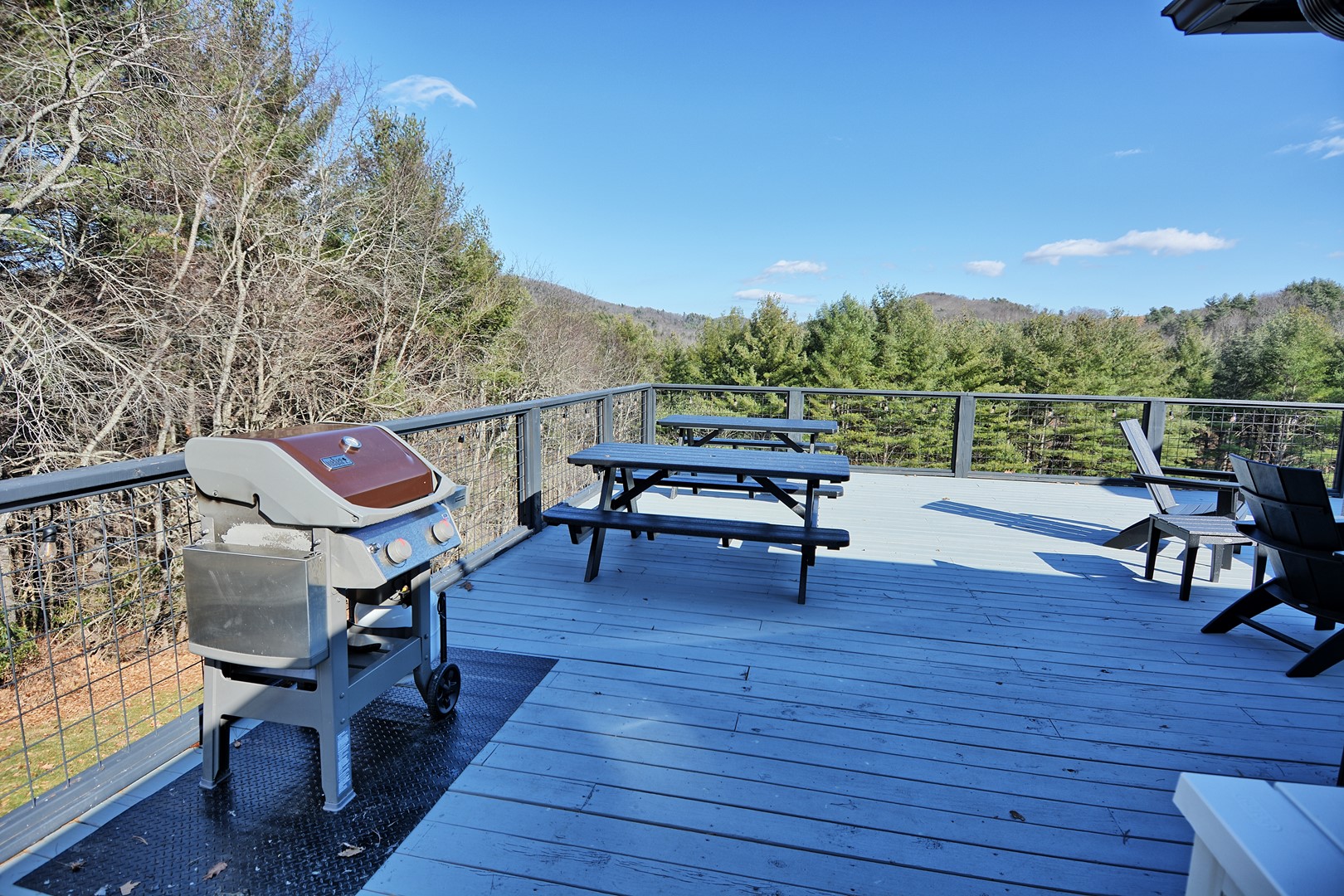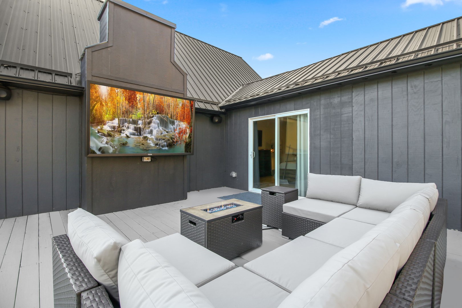 Outside: Step outside onto our open deck with lots of deck seating, a large 80” flat screen smart TV, exterior speakers, gas fire pit, gas grill and 2 picnic table. You’ll just love spending as much time outside as you would inside.