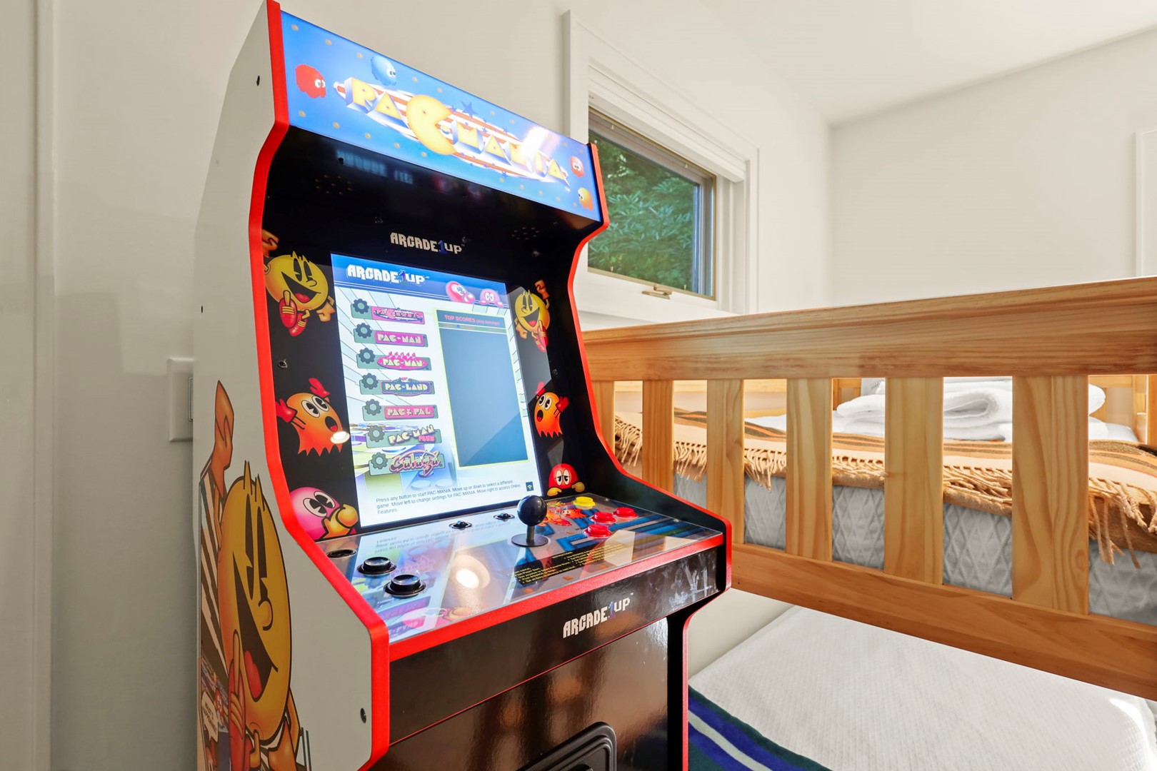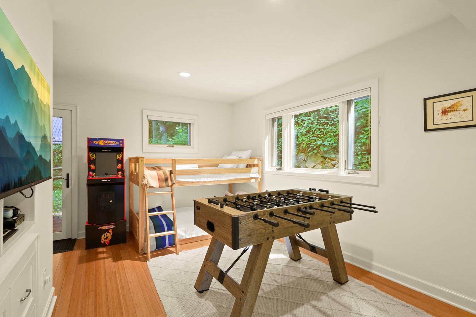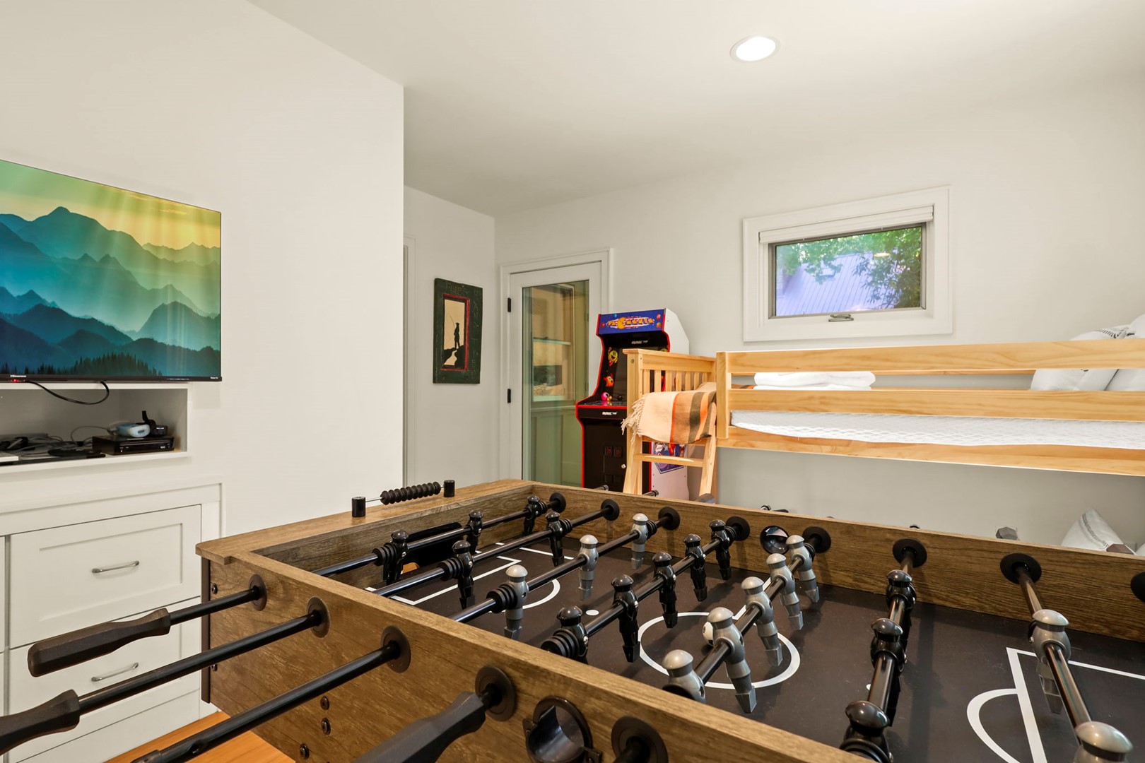 - Game Room/Bunk Room: Twin-over-twin bunks, SmartTV with Hulu Live, Disney and Netflix, foosball, Nintendo Wii, and a PacMan multi-cade arcade game—fun for kids and adults alike!