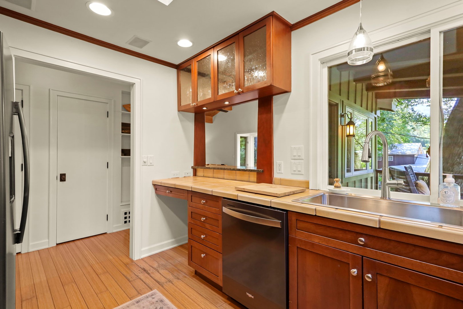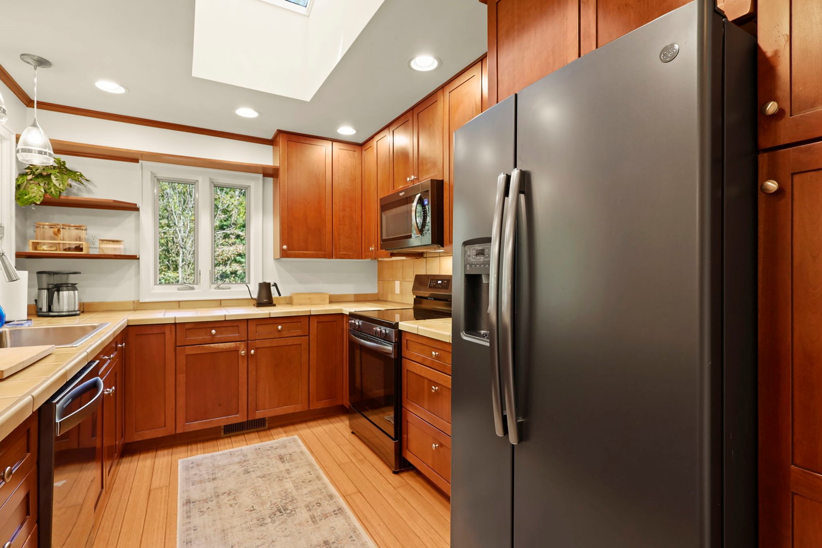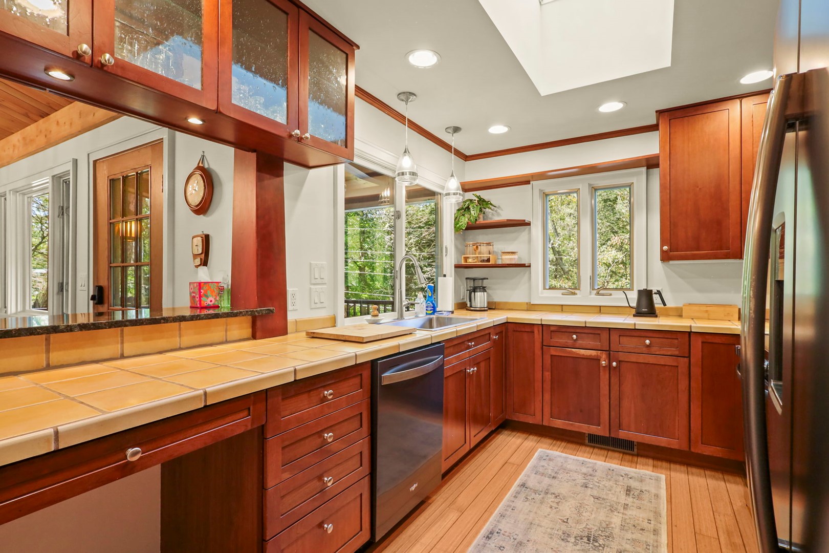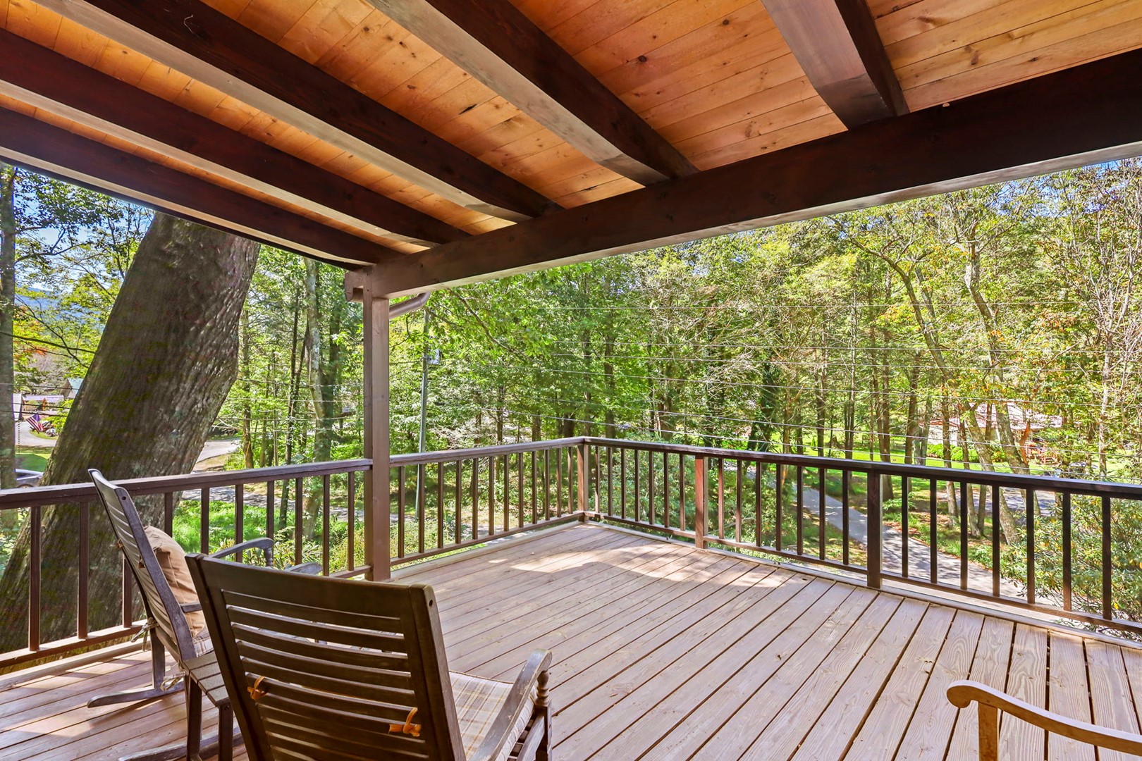 - Sitting Room: Skylight and large window with cozy seating—perfect for reading or relaxing. French doors lead to the side deck.