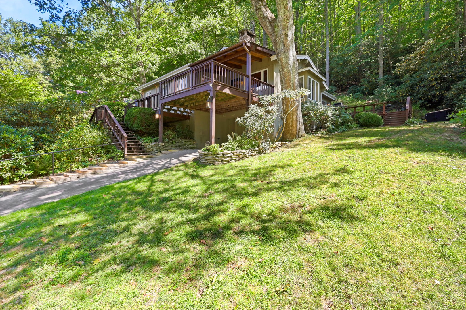 The home has parking for up to three vehicles via a steep paved driveway. Max 3 vehicles. There are steps from the parking area to the front door. AWD or 4WD is strongly recommended in winter months. The access road is graveled but level located just off the main paved road about half a mile. You will travel through a covered bridge and cross the Watauga River on your way to our home.