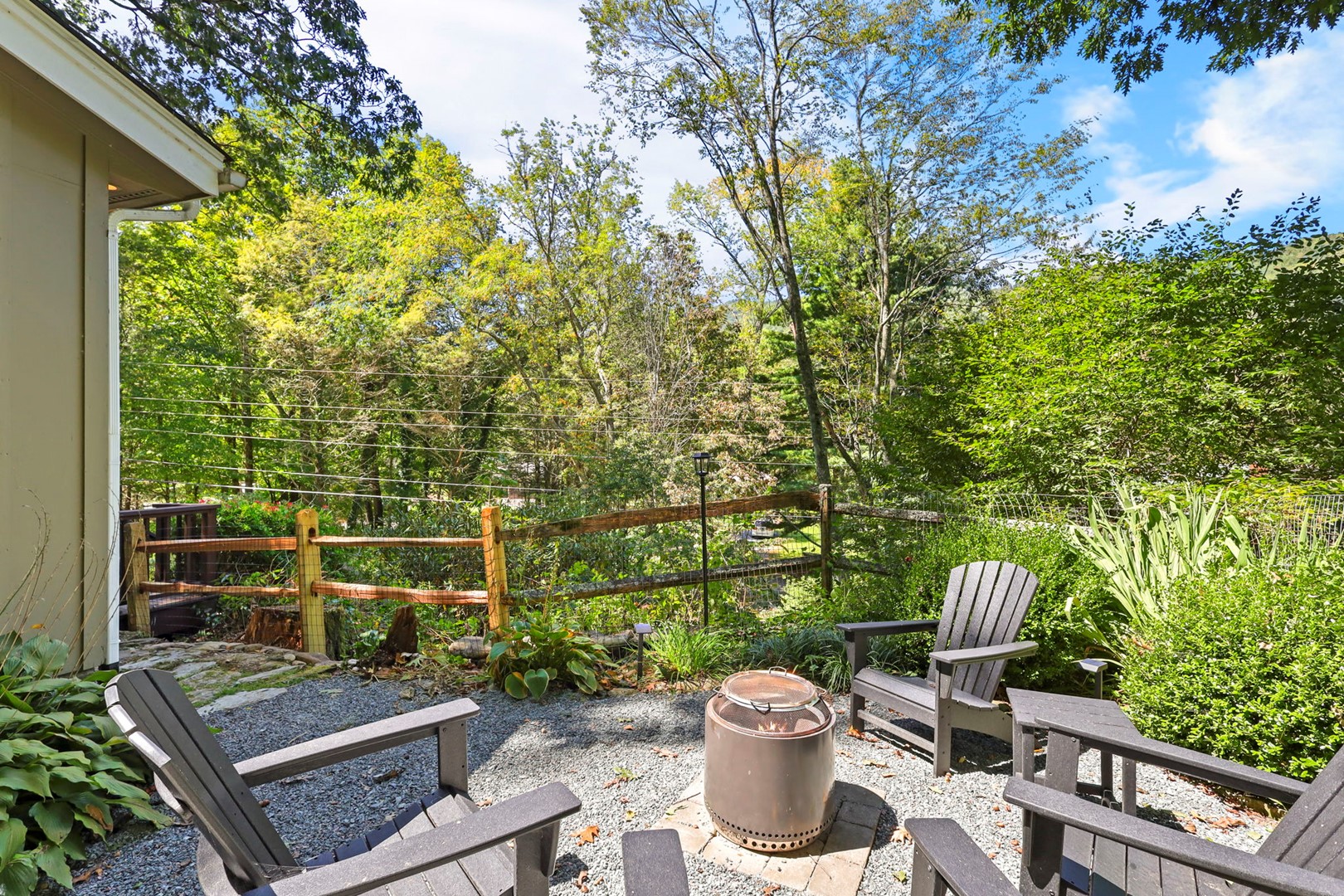 - Outdoor dining and fire pit (wood not provided)