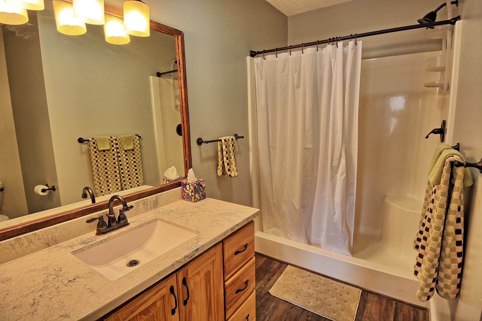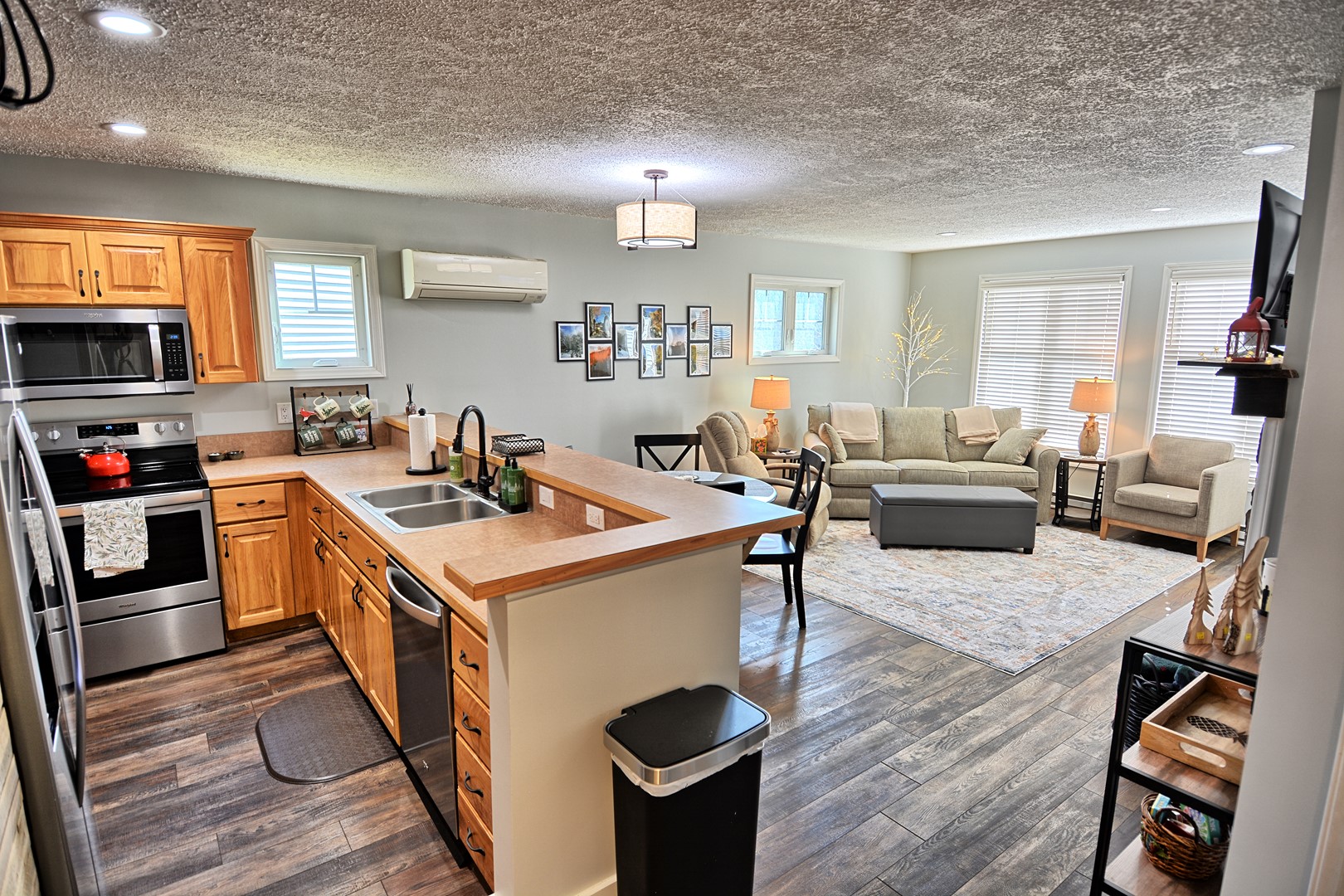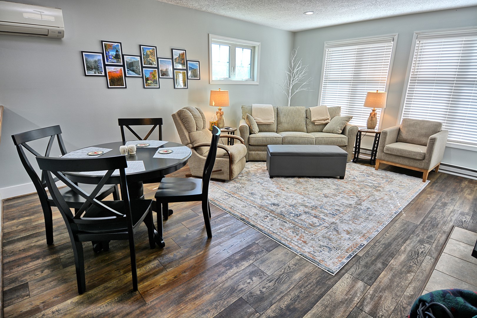 INDOOR LIVING: 3 Roku TVs with Spectrum cable, modern bathrooms, seasonal gas fireplace (Oct. – April), hardwood floors, spacious