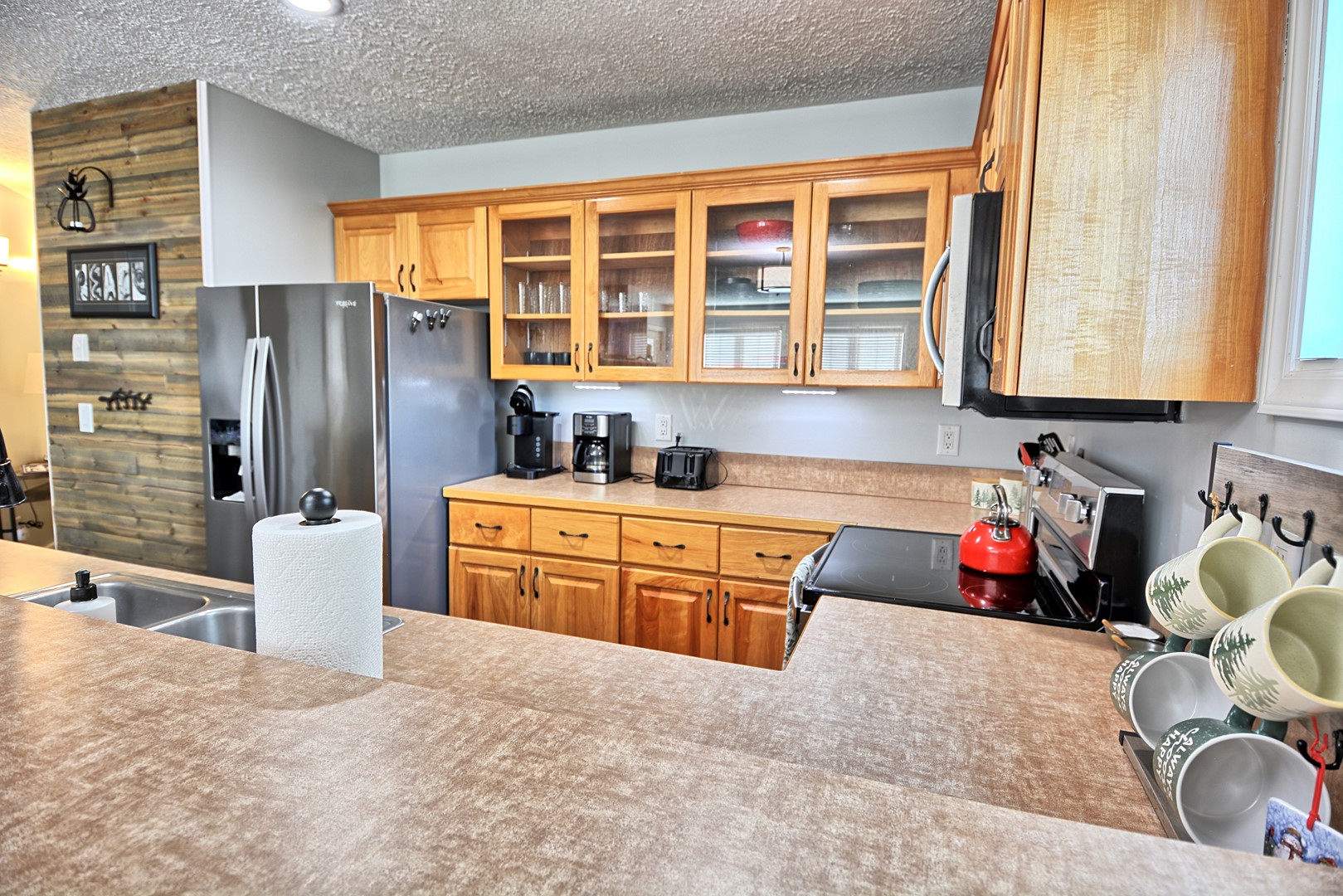 KITCHEN: Fully equipped, drip coffee maker, Keurig coffee maker, dishwasher, microwave, stainless steel appliances, 4 person dining table, great for games, too!