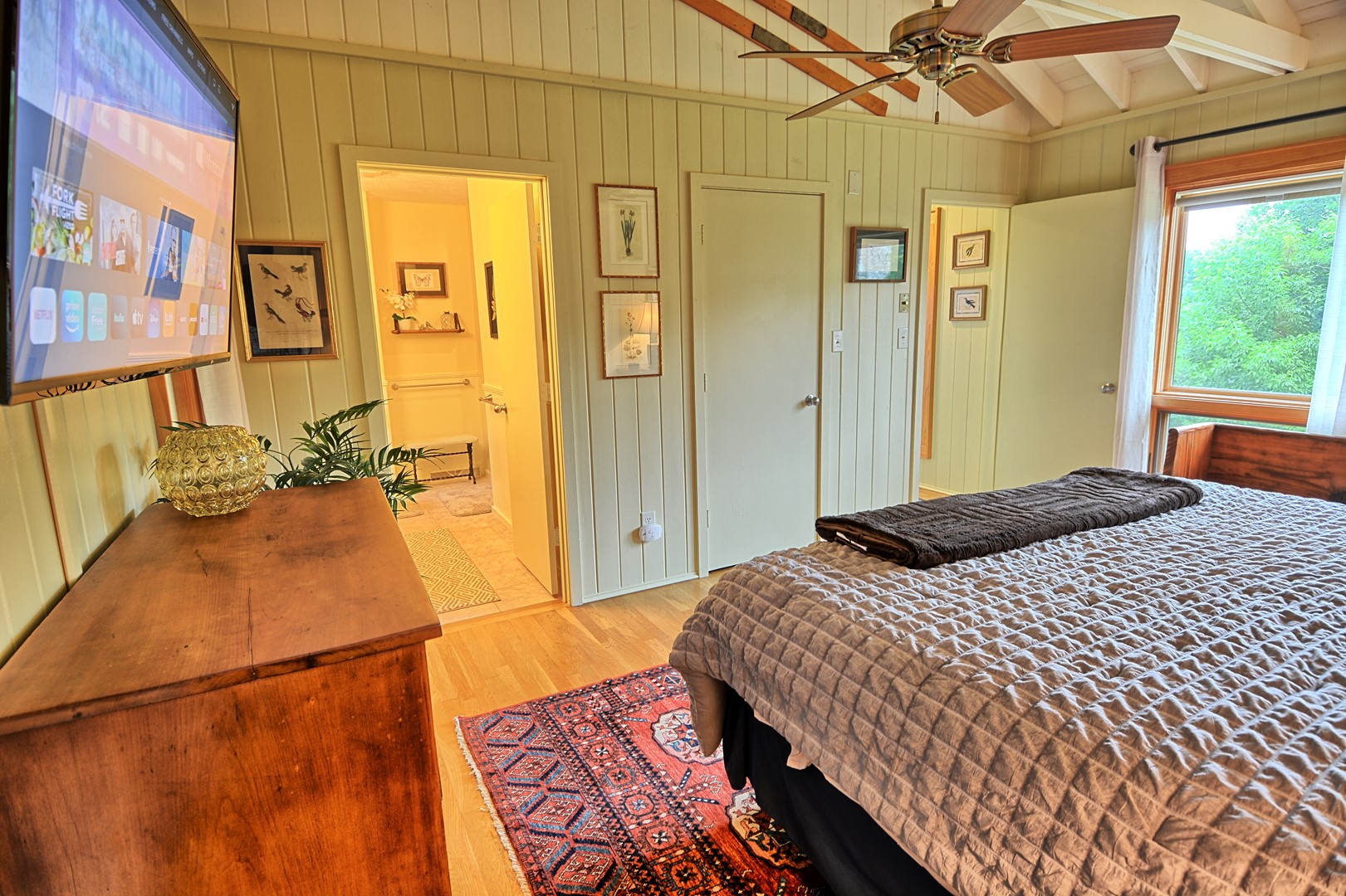 Hawk’s View Cottage is a cozy 2 bedroom, 2 bathroom that sleeps up to 4 guests with a 5 person hot tub. Each bedroom has a king size bed and one bedroom has an En Suite bathroom and the other bathroom is just outside of the other bedroom on the opposite side of the home. There are Smart TVs in each of the 2 bedrooms (streaming apps only). Stay cool in the warmer months with central AC.