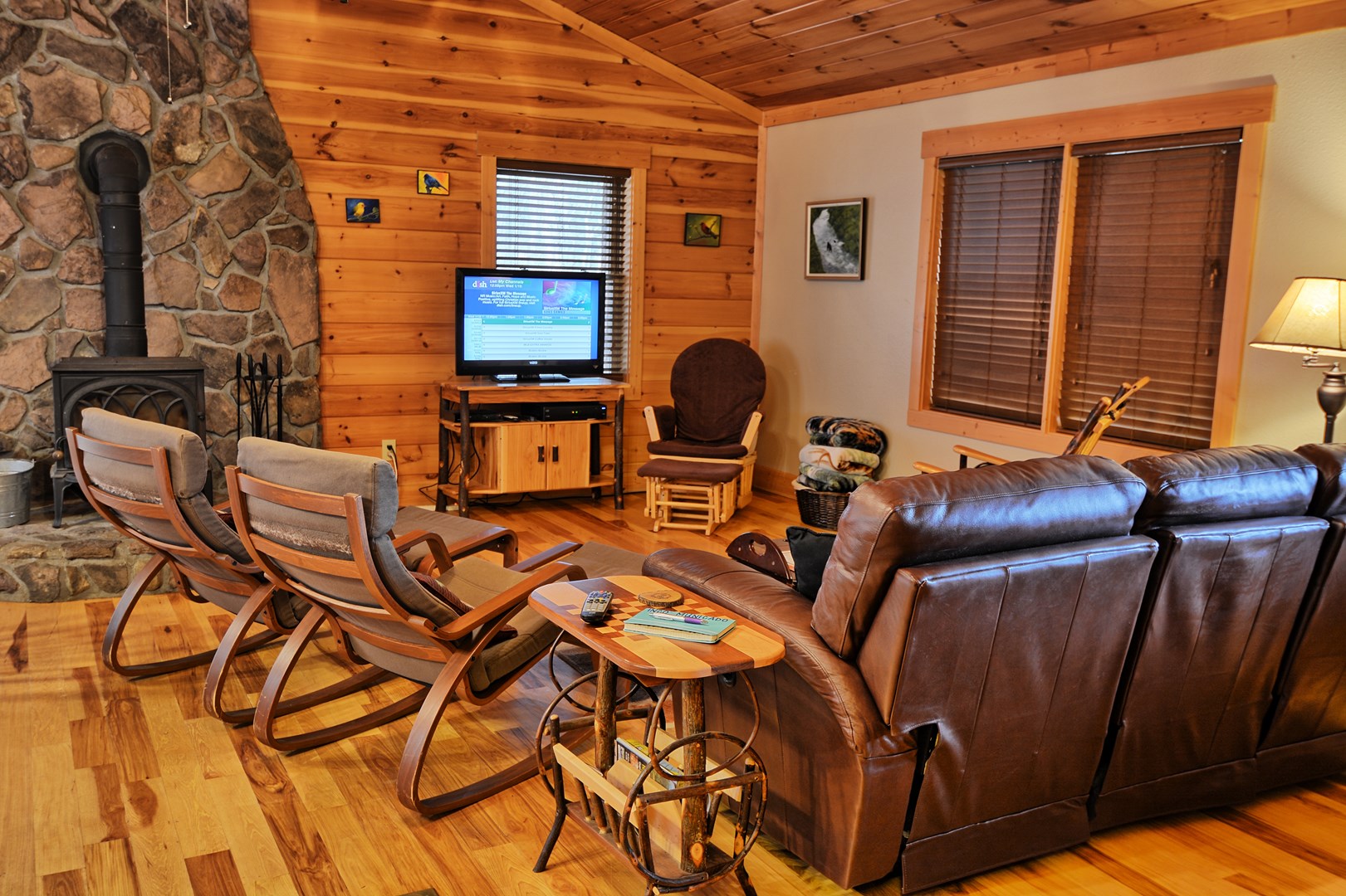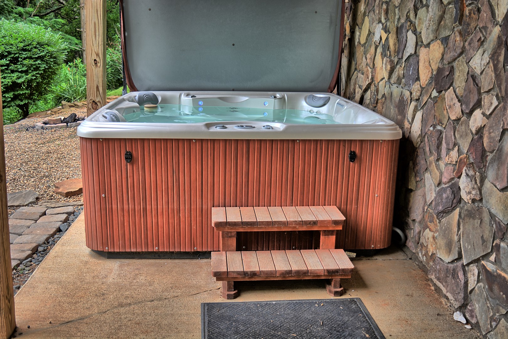 After a day of hiking, canoeing, shopping, or horseback riding, slip into the 6 person hot tub and relax. Let the soothing jets transport you to tranquility and listen to the sounds of the built in waterfall! The views from this cabin are incredible!!