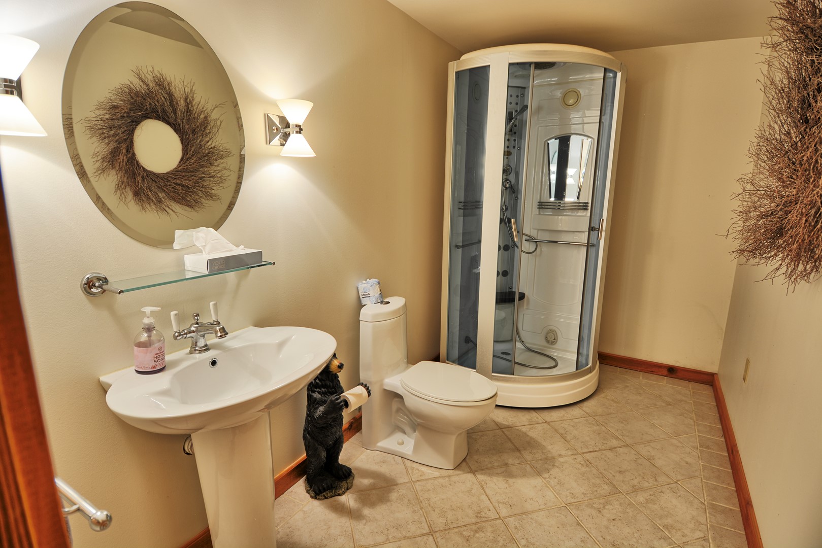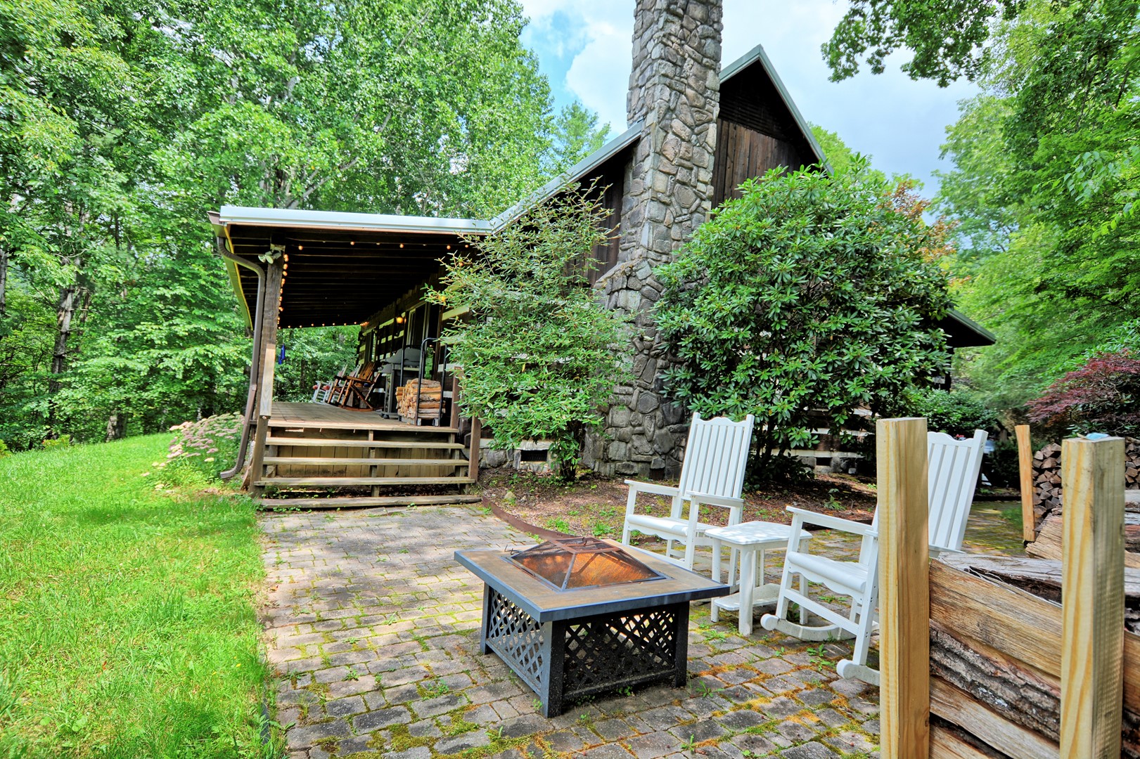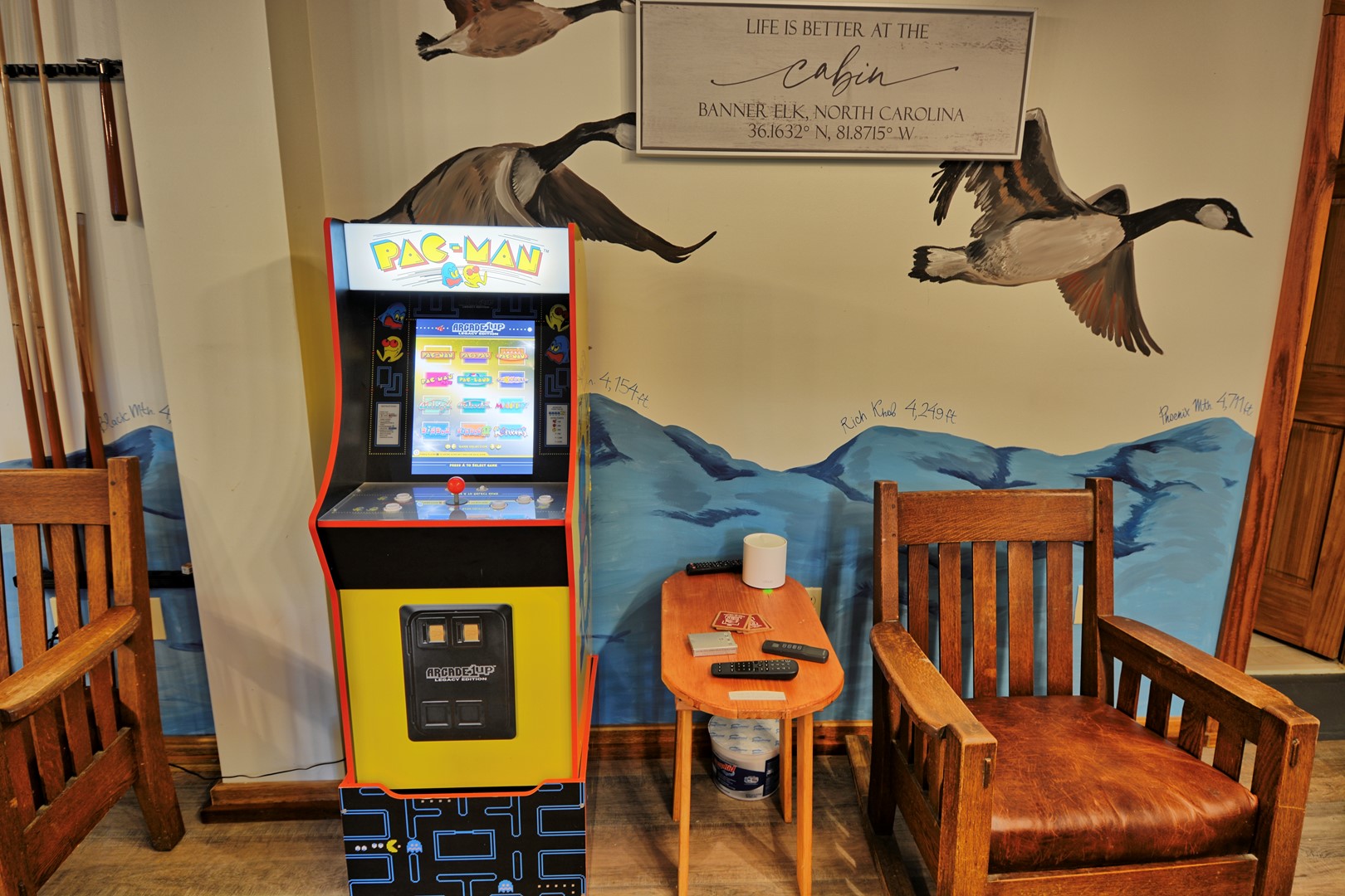 Step outside to the patio with a gas fireplace and comfortable seating—the perfect place to unwind after a fun-filled day. You will have to leave the cabin and walk across the parking area to access the game room.