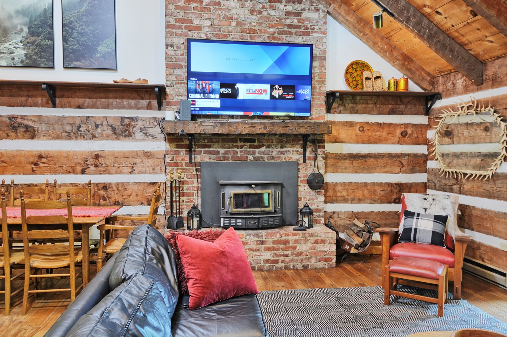 - Gas fireplace (seasonal), TV with DirecTV, and a full bathroom