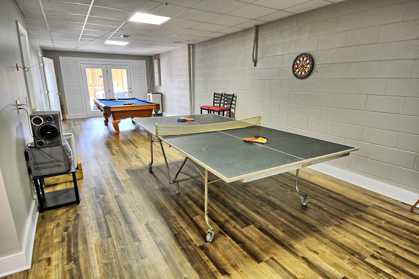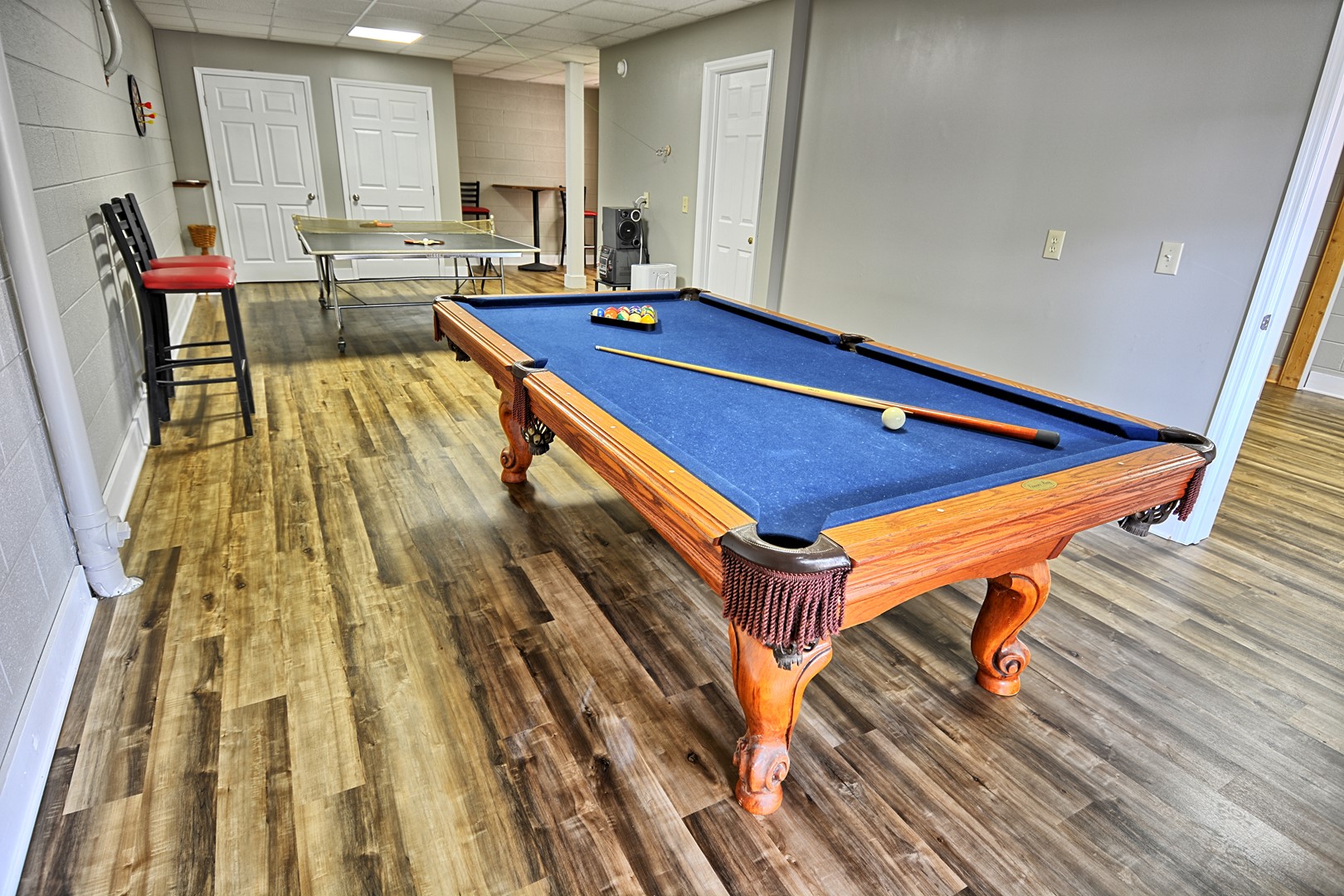 Lower Level: The lower level offers a 4th bedroom with a queen size bed and Roku TV. There is a full bathroom. Enjoy playing a game of pool or a friendly game of ping pong in our amazing game room.