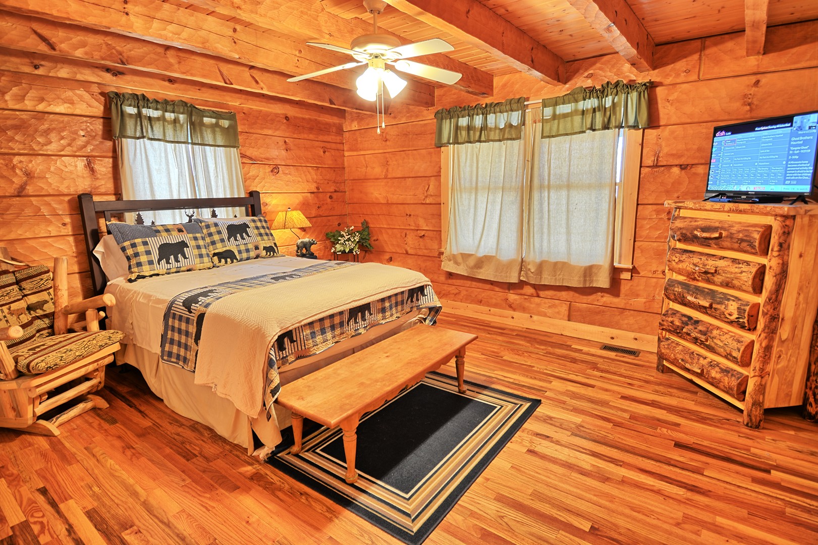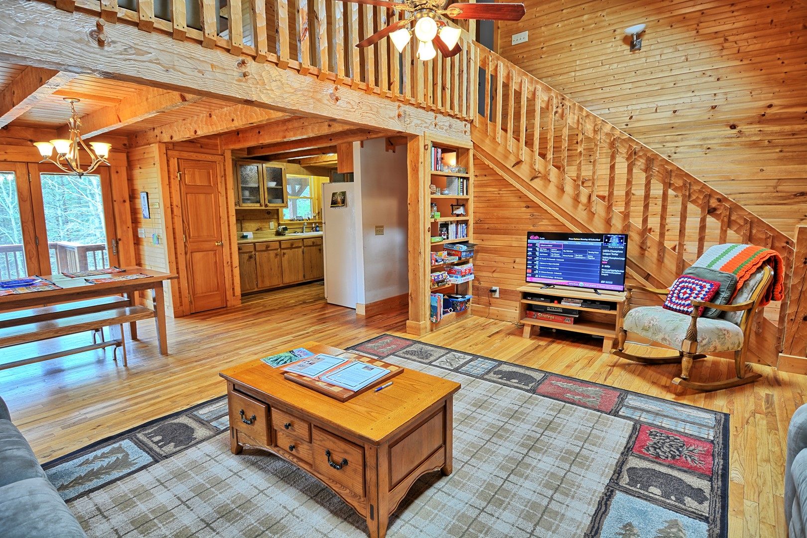 This incredible log home offers tranquility while still conveniently located for hiking, horseback riding, water sports, and a short ride to downtown Jefferson and West Jefferson, NC.