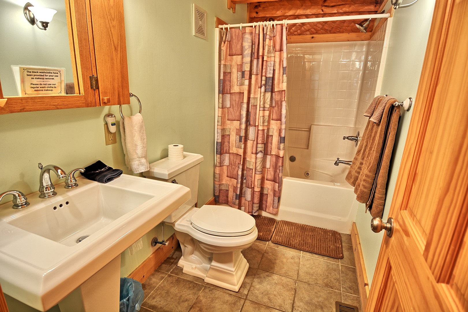 Mountain Heir has 4 bedrooms and 3 full bathrooms. The master queen size bedroom is on the main level along with the master bathroom with a whirlpool tub. The other two bedrooms are on the upper level. One of them having a queen size bed and the other is a king bed. There is also a full bathroom on the upper level. The third bathroom is located on the lower level of the home.