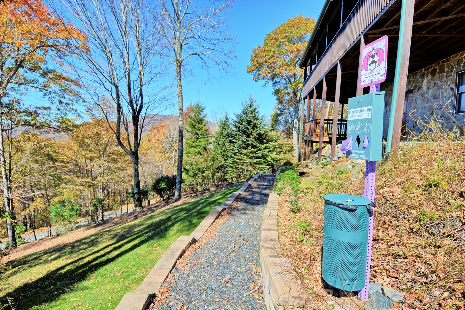 - Dog waste station with complimentary waste bags.