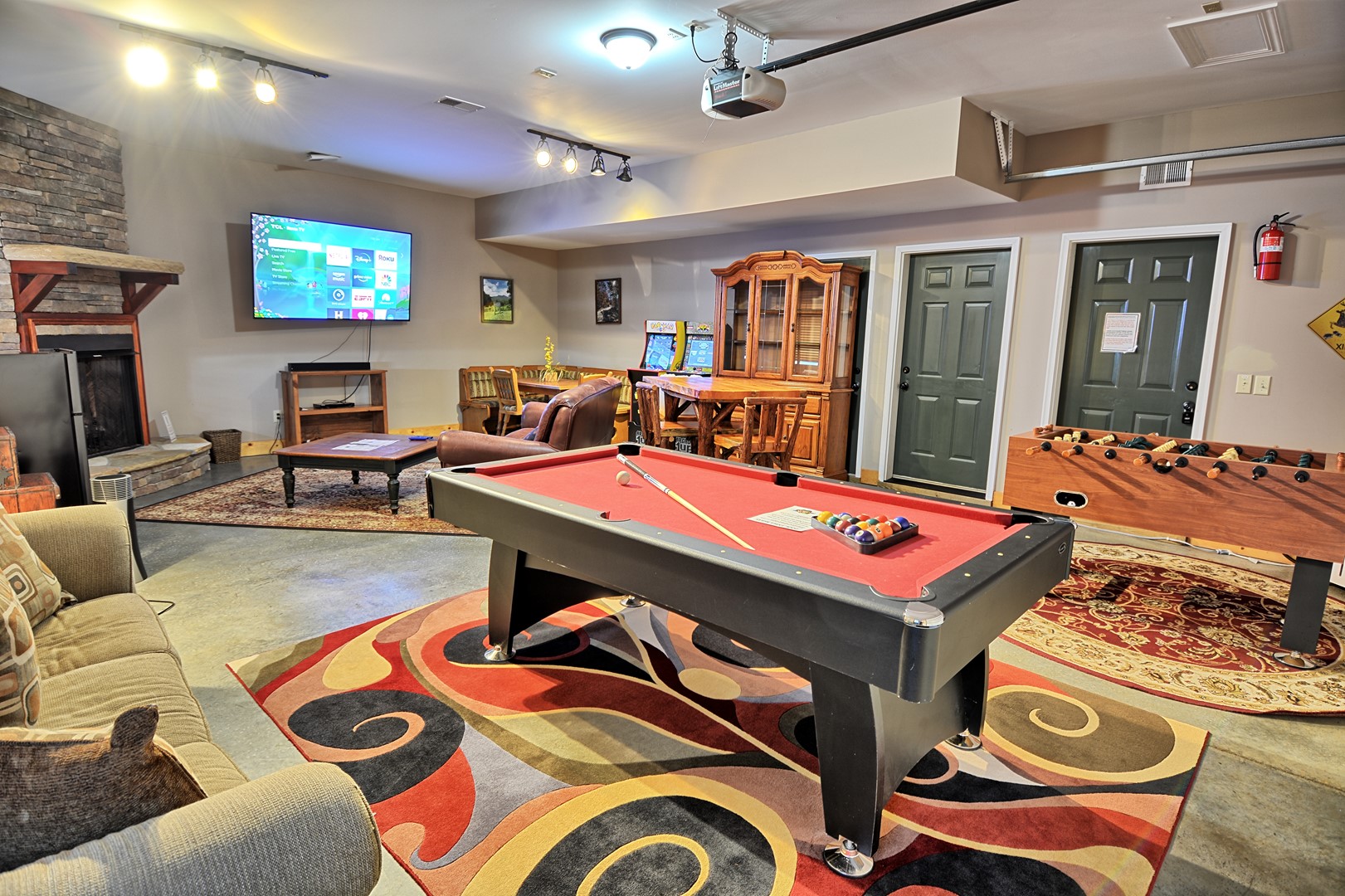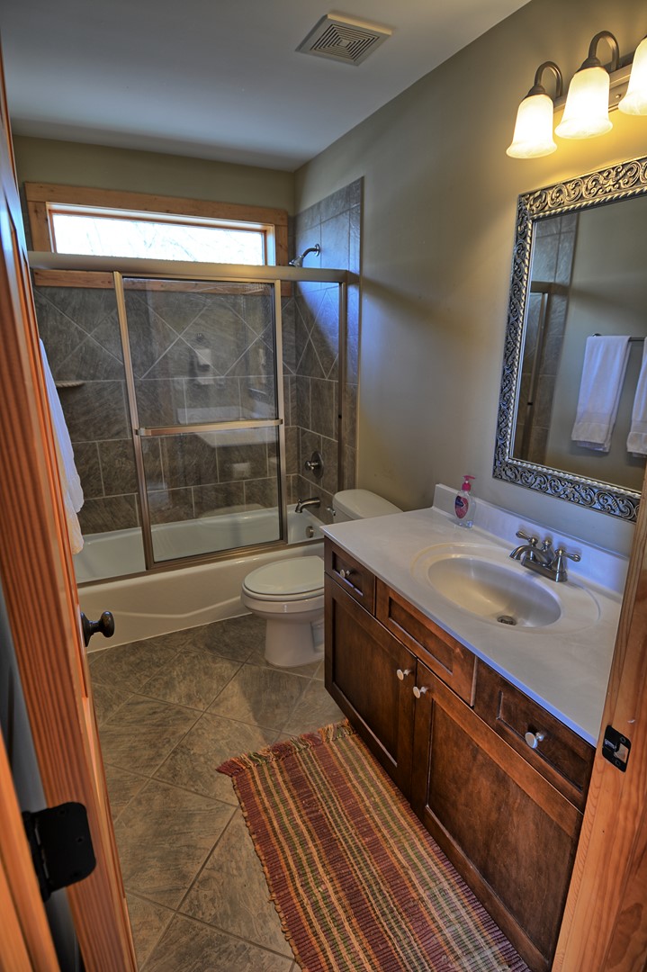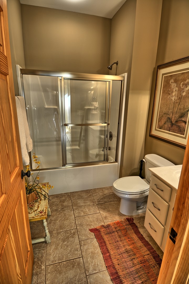 LOWER LEVEL: The 4th bedroom is on the lower level with a queen size bed and a bunk bed. The third full bathroom with tub/shower combo along with the family/game room is on the lower level.