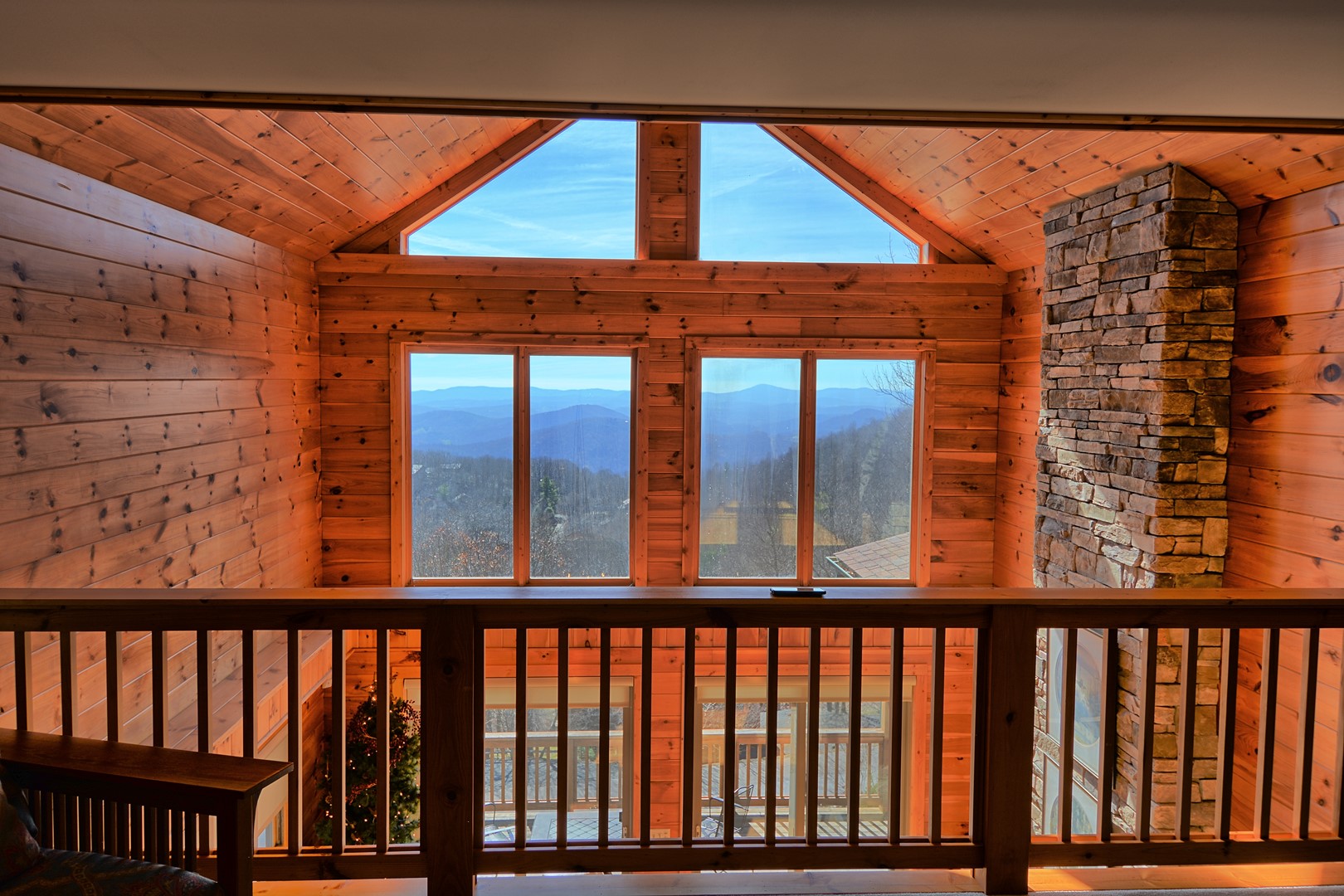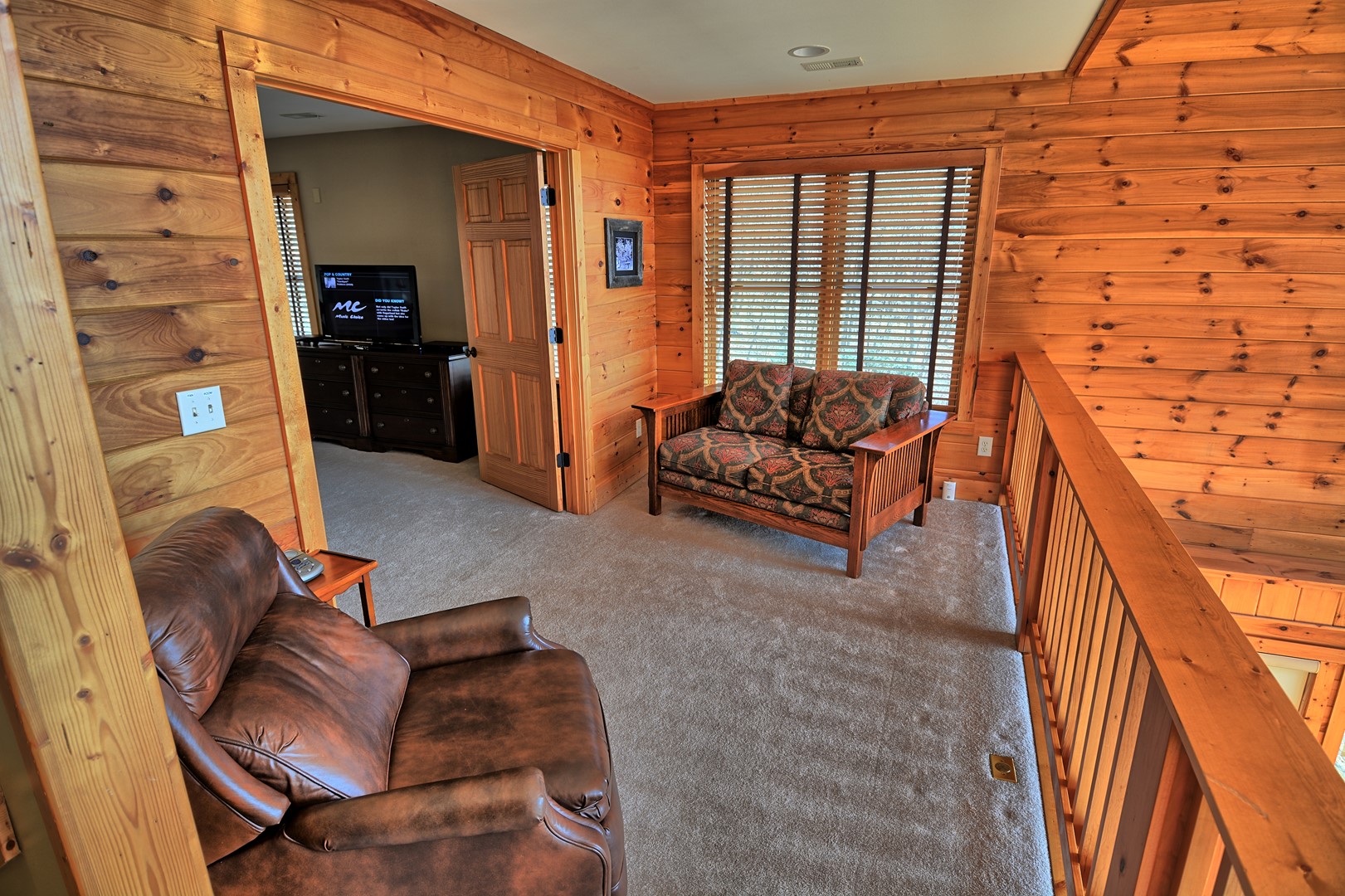 The loft offers additional seating and a media room with a couch and cable TV. The mountain views from the loft are spectacular and a must see! There is plenty of room for the family and friends to spread out and have their own area.