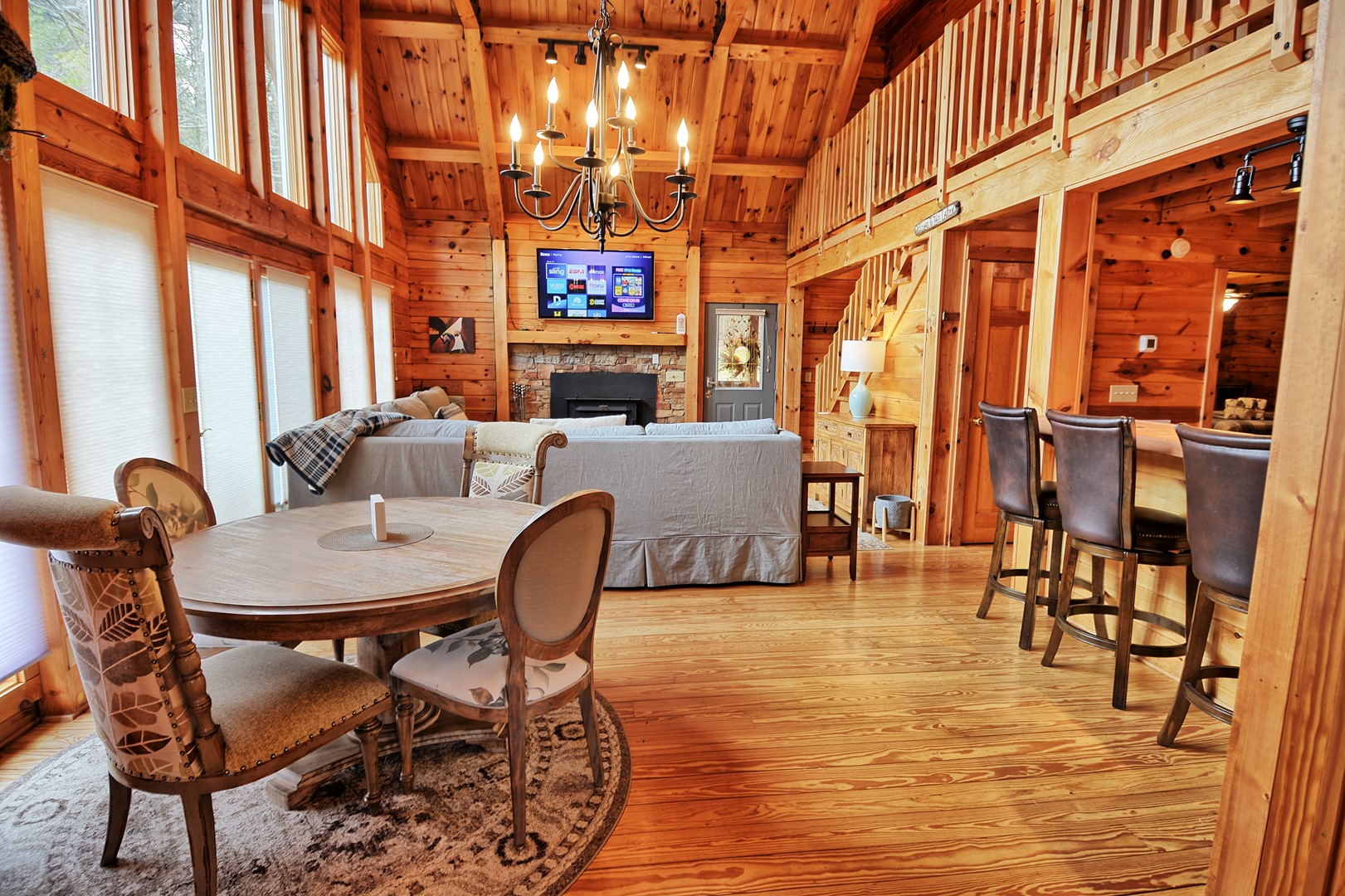 “Spruced Up” cabin offers 3 bedrooms, 3 bathroom, hot tub, privacy/seclusion located in Alleghany County, sleeps maximum 6 guests, WIFI, AC, 1 wood burning fireplace and 1 gas fireplace (seasonal) and is located just minutes from the Blue Ridge Parkway and Doughton Park. If you’re looking for privacy, comfort, and want to get away from all of the hustle and bustle of life, THIS is the one you’ve been looking for. Escape to our little piece of mountain heaven!