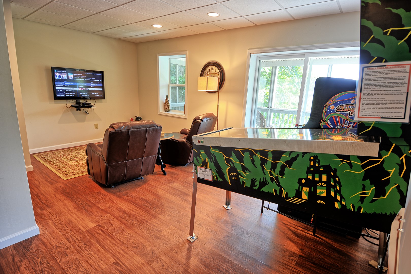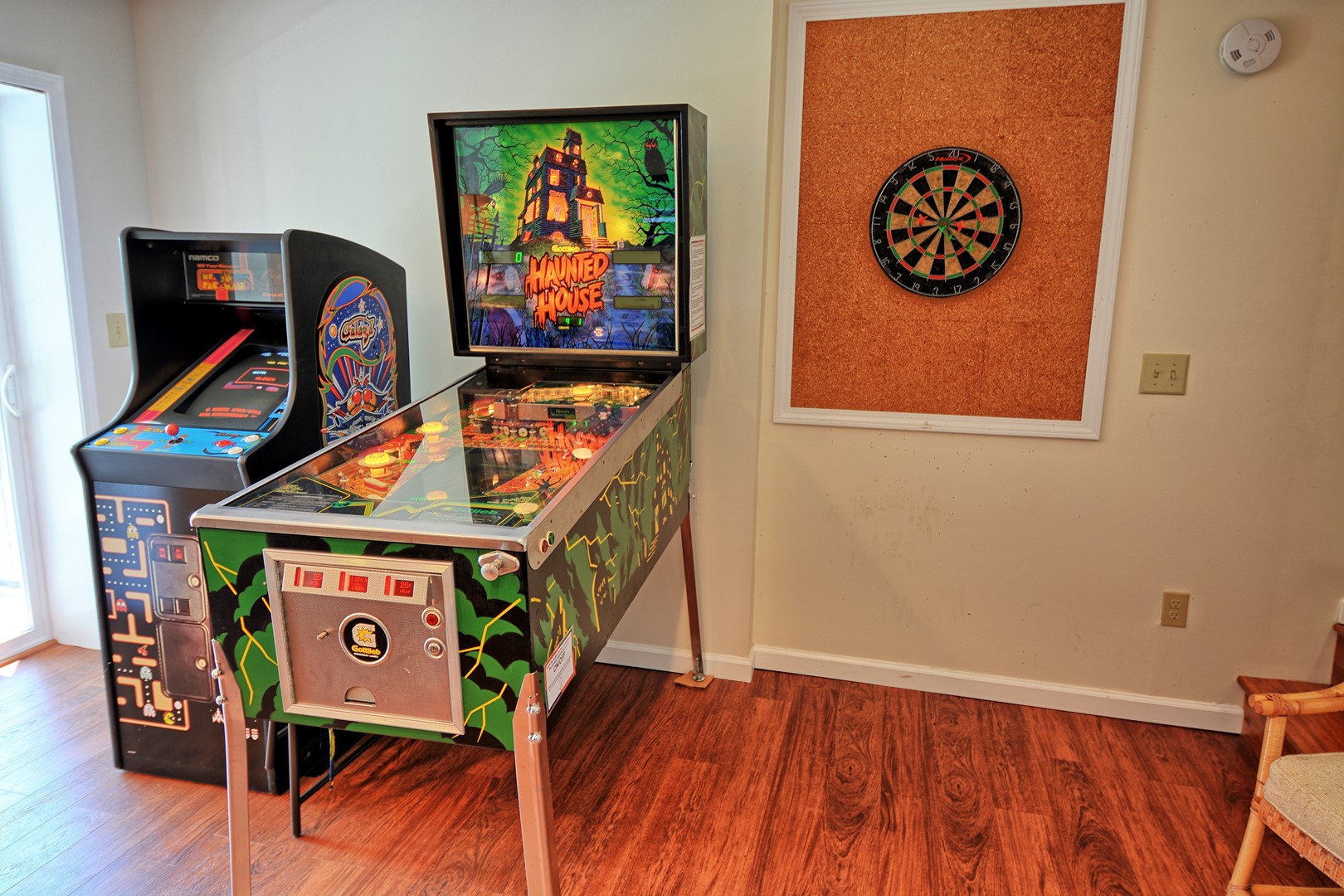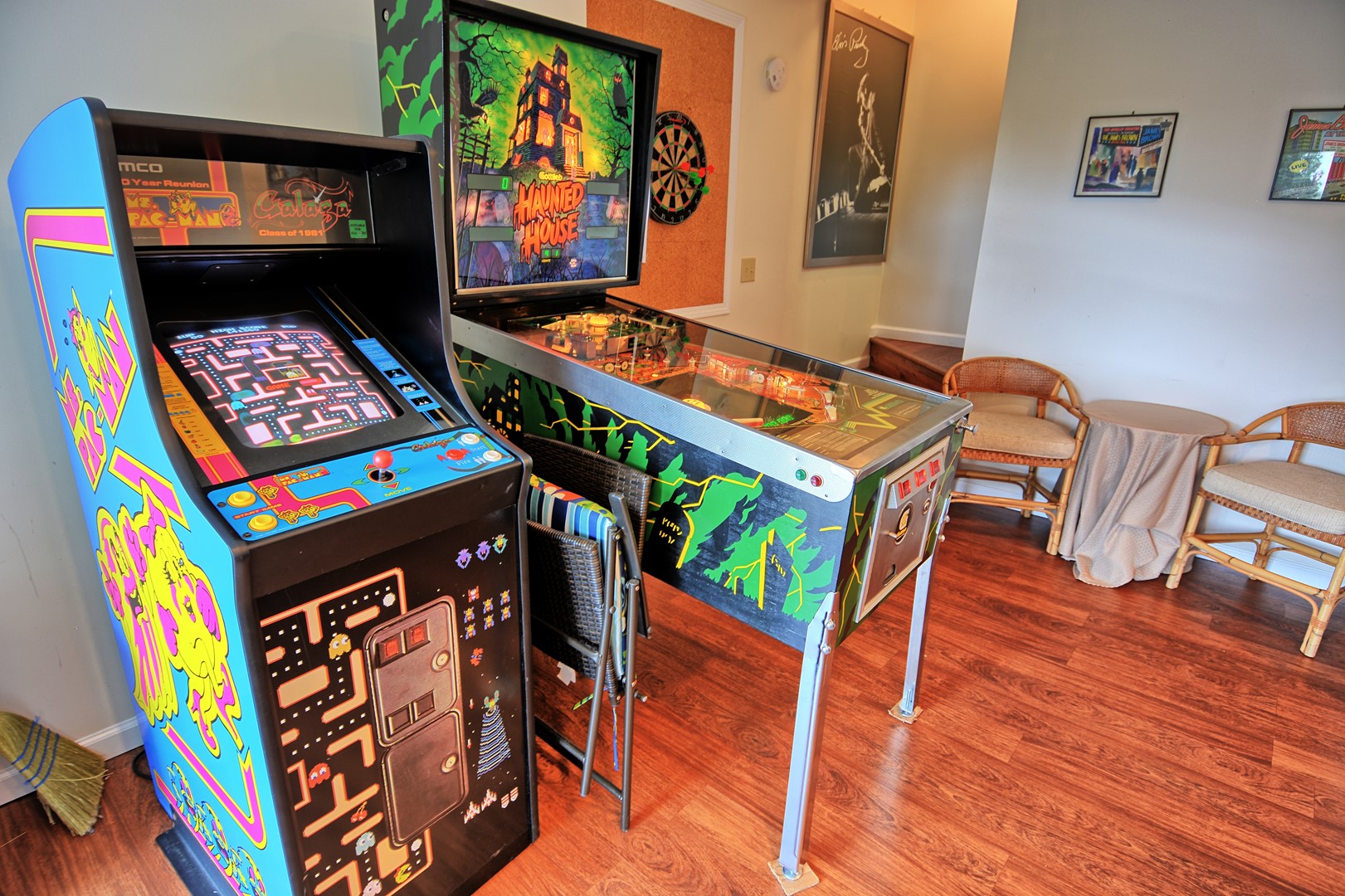 There is a sitting area in the basement with a nice flat screen TV with Roku, a half bathroom, and an arcade video game with Ms. PacMan and Galaga and a vintage Haunted House pinball machine (due to the age of the pinball machine, free-play is not available. The cost is 25 cents per play. We're sorry for the inconvenience).