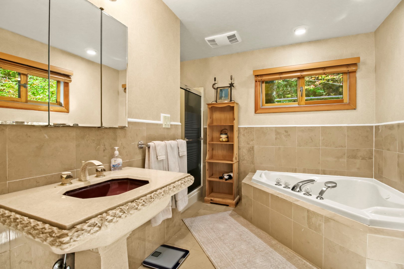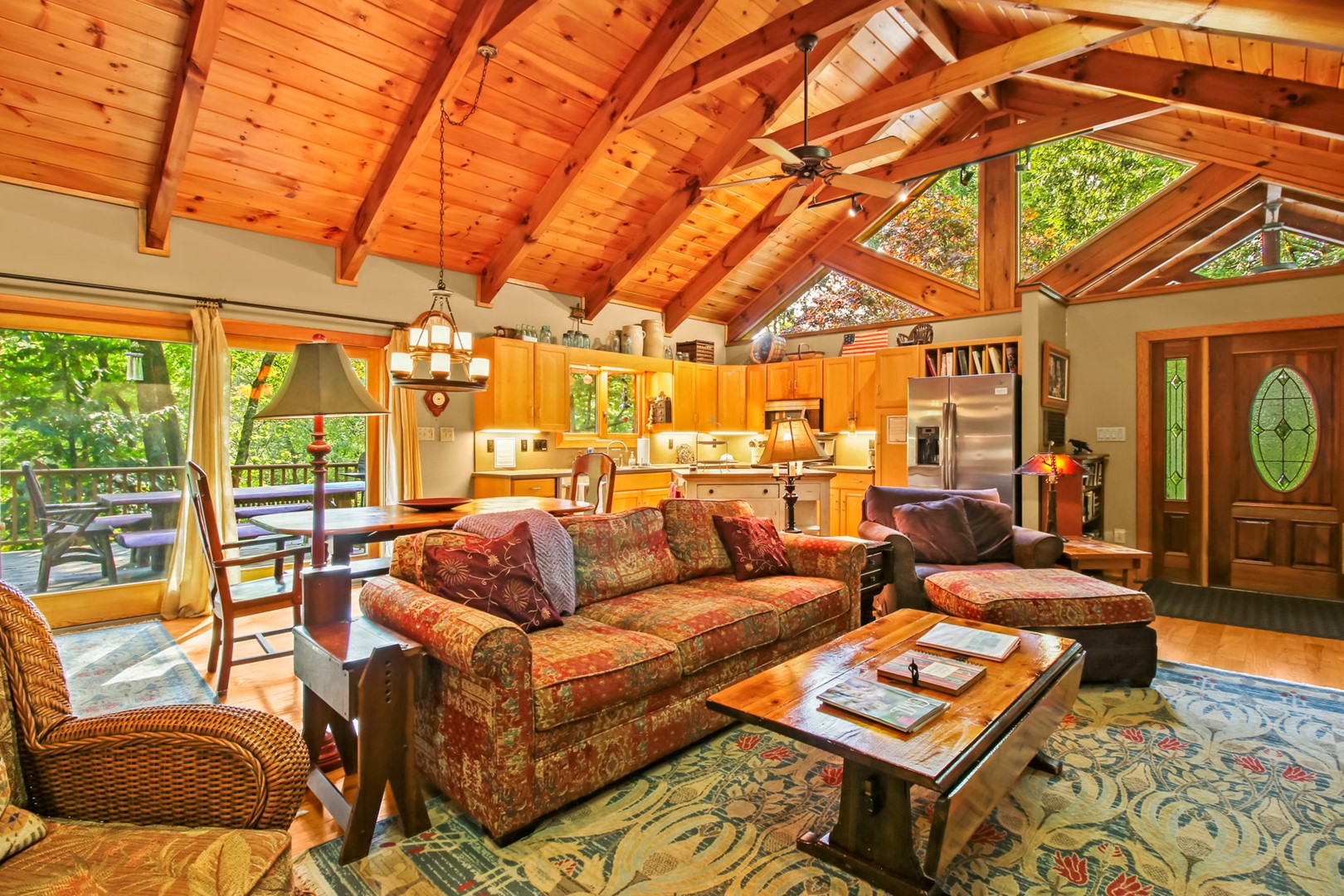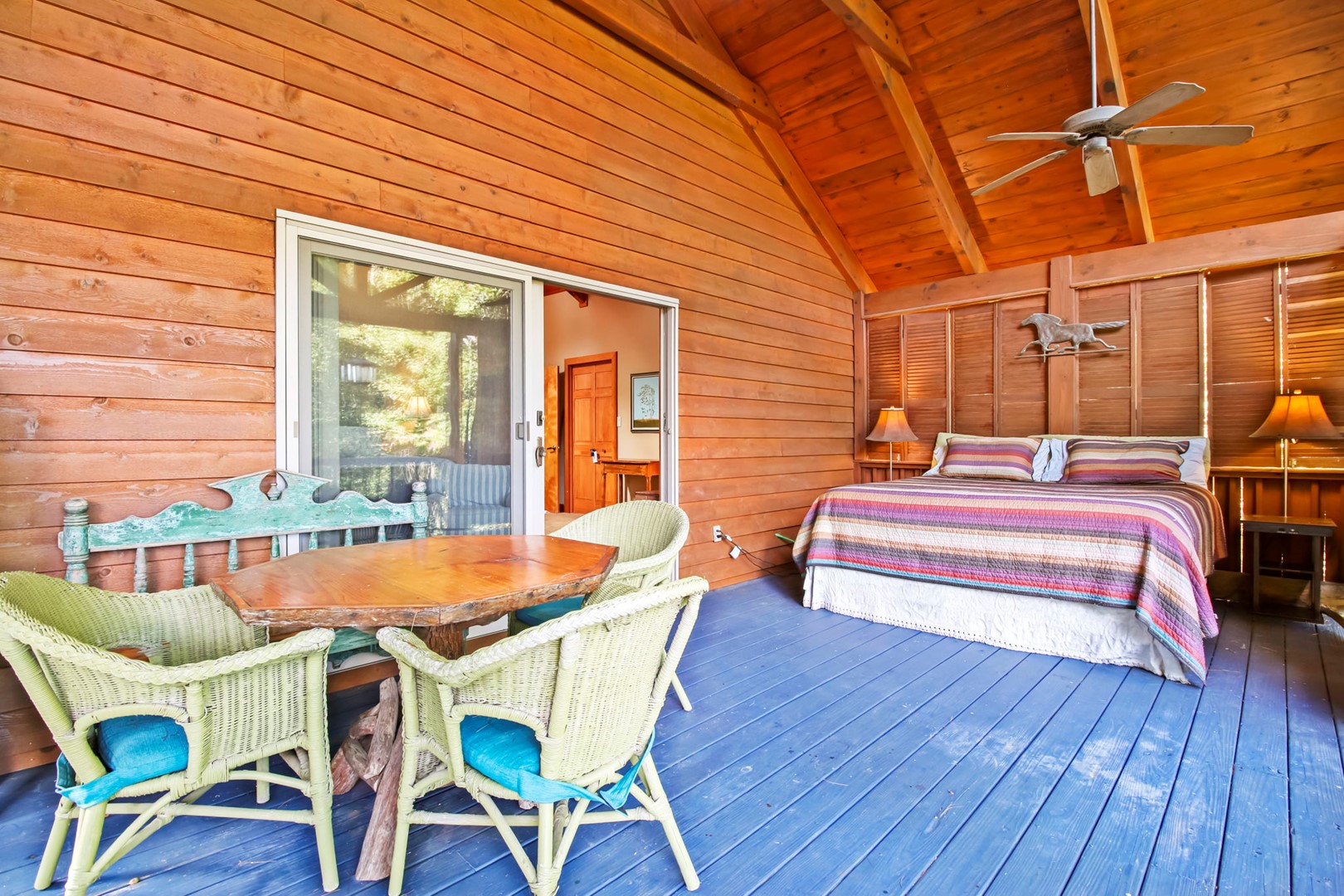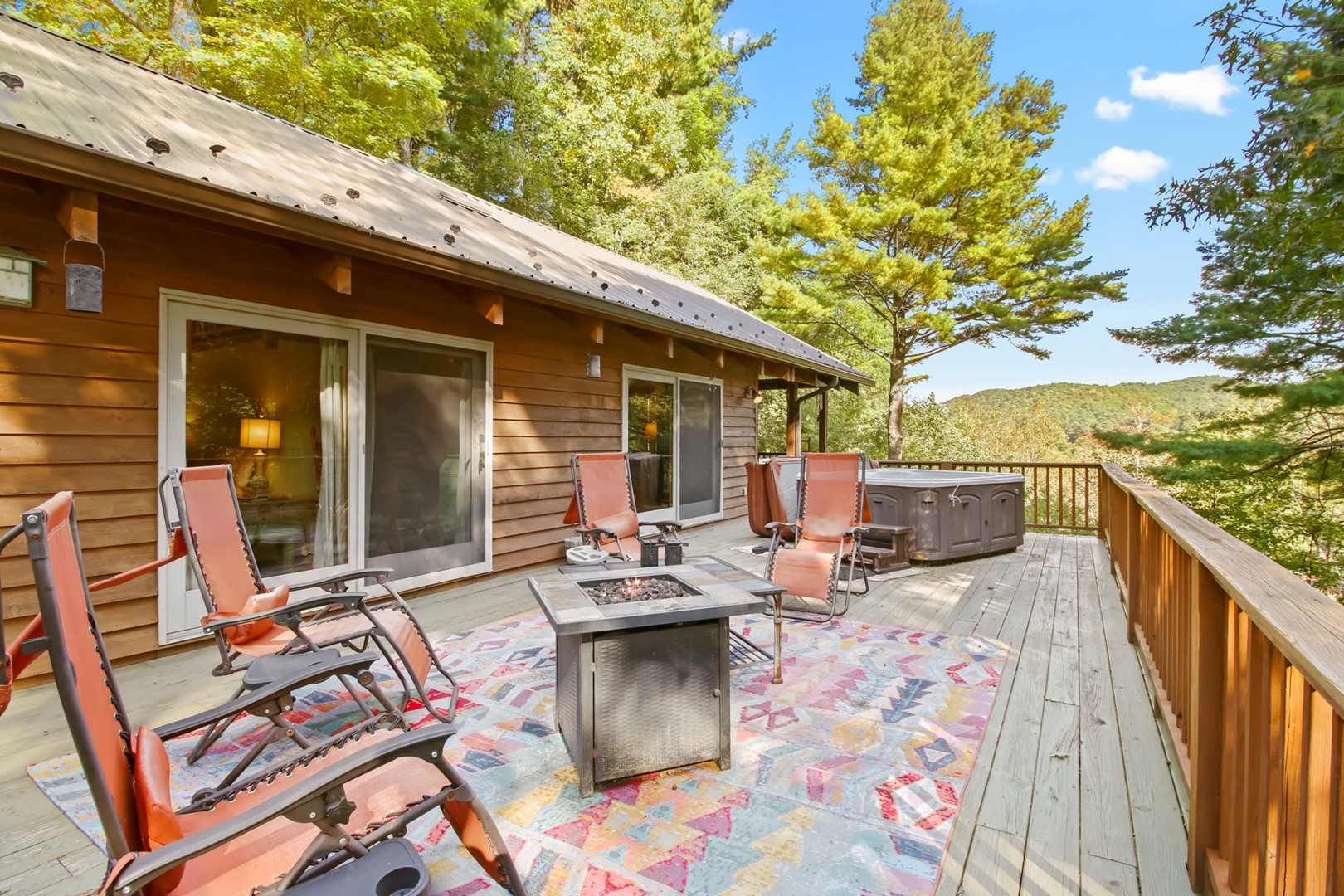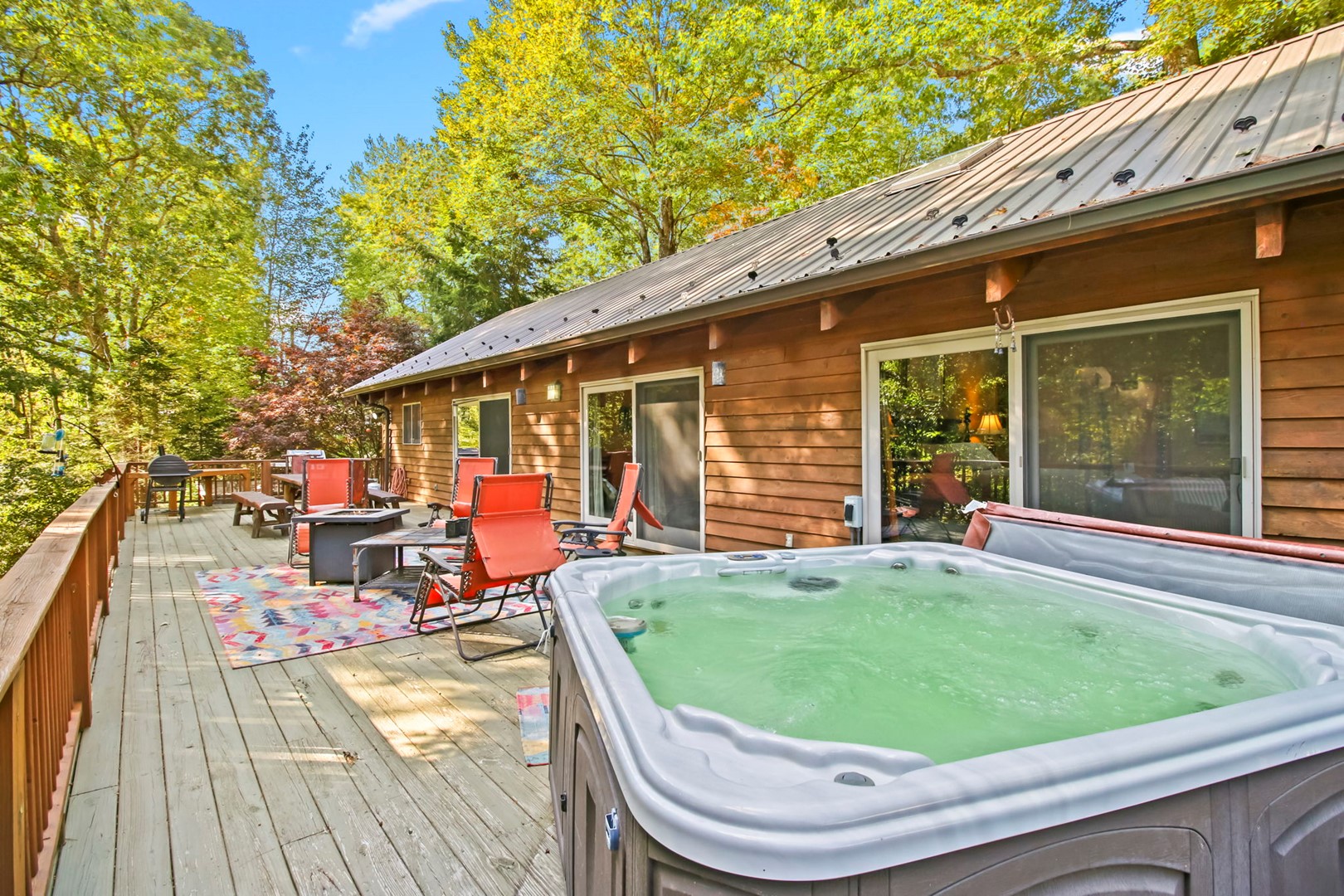 The master suite invites you with a king size 4 poster bed, private master bathroom with Jacuzzi tub and separate step in shower, a private entrances onto the covered deck where you can relax, sit a spell, and recoup from your busy life. Also enjoy the relaxing 5-6 person hot tub on the deck.